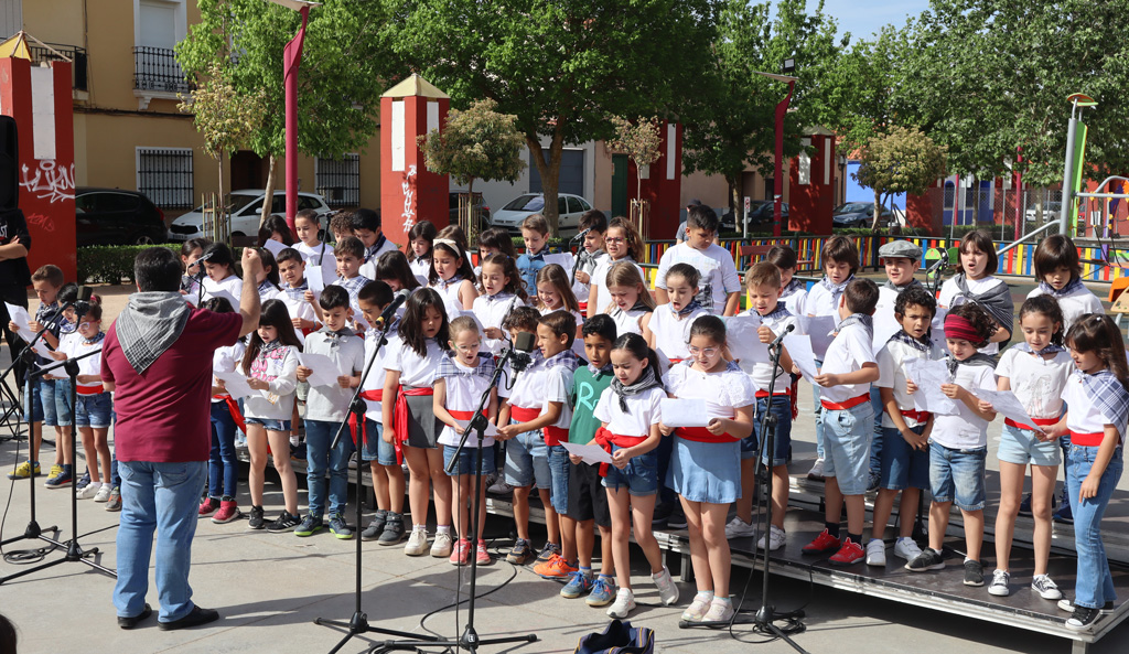 El Parque Cervantes de Alcázar de San Juan se ha llenado de público, en la mañana de este miércoles 3 de mayo, para disfrutar del sexto Encuentro Escolar de Mayos organizado por la Asociación de Coros y Danzas.
