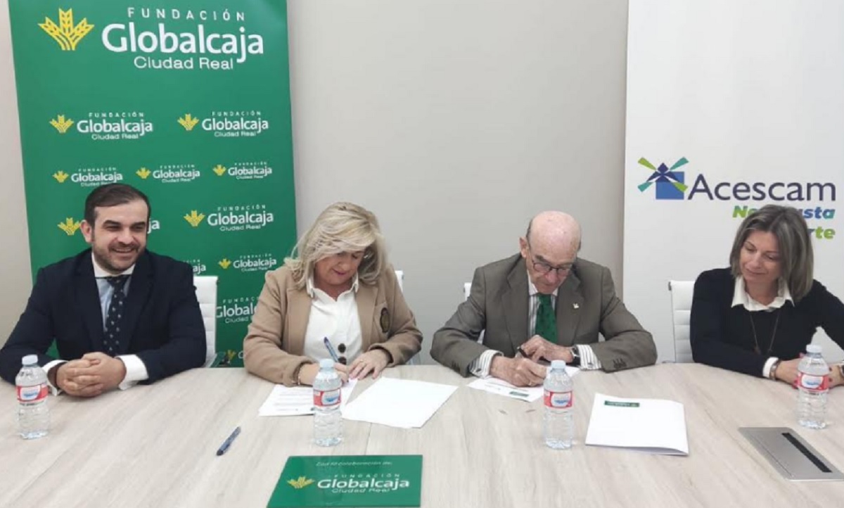 Este acuerdo de colaboración ha sido confirmado por el presidente de la Fundación Globalcaja Ciudad Real, Rafael Torres Ugena, y María Ángeles Sánchez Trillo, secretaria de la Fundación ACESCAM, en presencia de Raúl Rosado, director de la Oficina de Globalcaja en Tomelloso, y Diony Sánchez, responsable de Organización de la Fundación ACESCAM.
