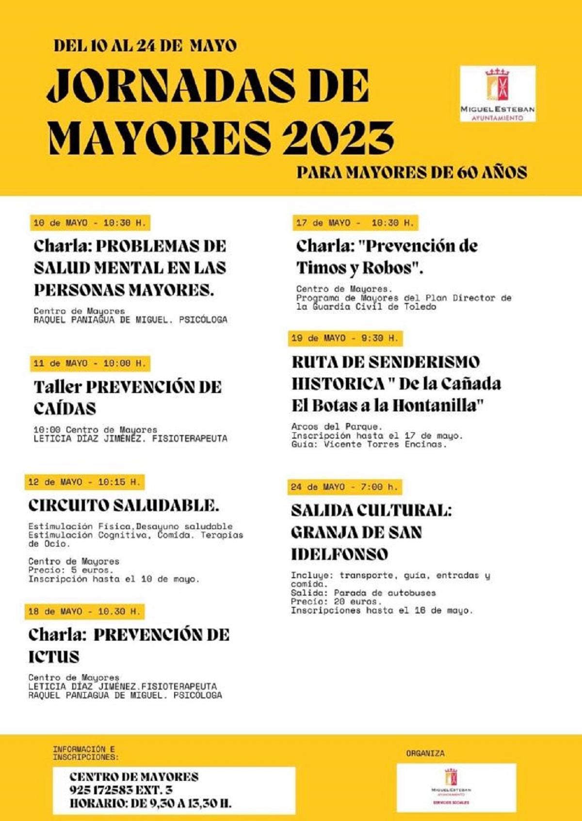 La Concejalía de Servicios Sociales del Ayuntamiento de Miguel Esteban ha organizado un amplio y variado programa de actividades con motivo de las Jornadas de Mayores, que se desarrollarán del 10 al 24 de mayo en la localidad.