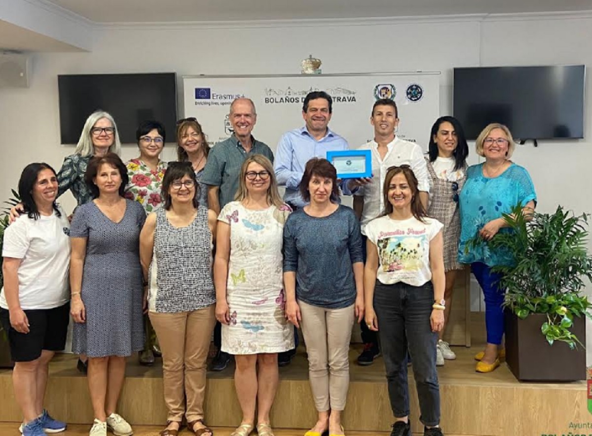 El alcalde de Bolaños, Miguel Ángel Valverde, junto al concejal de educación, Felipe López, la concejala de juventud, Victoria Gómez, y el director del instituto, Antonio Fernández, recibieron en el Salón de Actos del Ayuntamiento a los alumnos y docentes provenientes de Lituania, Estonia, Turquía, Italia y Portugal, que participan en el programa Erasmus+ de intercambio escolar en el IES Berenguela de Castilla de Bolaños de Calatrava.