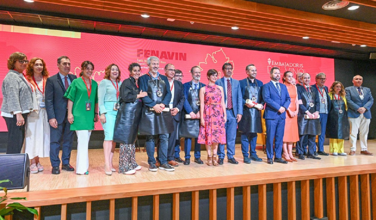 Esta tarde se ha ampliado el Cuerpo Diplomático de los Embajadores del Vino de FENAVIN en el transcurso de un acto en el que se le ha impuesto el mandil y el característico tastevín a Juan Manuel del Rey, copropietario y director de El Corral de la Morería; a Manuel Rayo, médico cardiólogo del Hospital General Universitario de Ciudad Real; a Xelo Montesinos, CEO de Unicorn Content; al ilusionista Jorge Blass; al actor y presentador, Carlos Sobera; a la actriz y escritora Elvira Mínguez; a Almudena Alberca, enóloga y primera mujer española Master of Wine; a la escritora María Oruña y al expresidente de la Diputación y de FENAVIN, Nemesio de Lara. Manuel Gutiérrez Aragón, director de cine, guionista y escritor, no ha podido asistir.