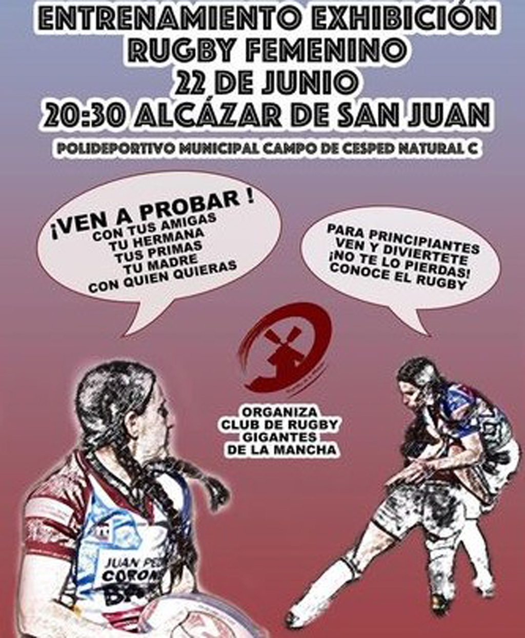 Con la intención de mostrar este deporte, especialmente al público femenino, el Club Rugby Gigantes de La Mancha ha preparado para la tarde-noche del jueves 22 de junio un entrenamiento-exhibición de rugby femenino que tendrá lugar en el Campo C de Césped Natural del Polideportivo Municipal “Manuel Delgado Meco” de Alcázar de San Juan.