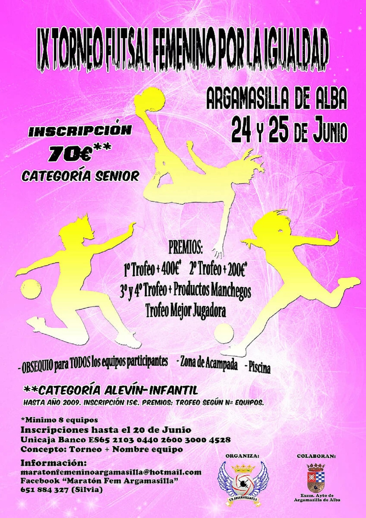 Vuelve el Torneo Futsal Femenino por la Igualdad de Argamasilla de Alba, en su XIX edición, organizado por el C.D. Argamasilla F.S.F. con la colaboración del Ayuntamiento de Argamasilla de Alba, el cual se llevará a cabo en el Pabellón Polideportivo de la localidad los días 24 y 25 de junio.