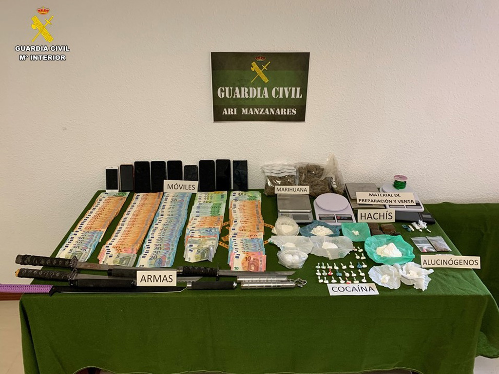 En mayo de este año se finalizó esta operación con la entrada y registro en once domicilios con la autorización del Juzgado de 1ª Instancia e Instrucción Nº2 de Manzanares, en los que se aprehendieron las siguientes sustancias y efectos: