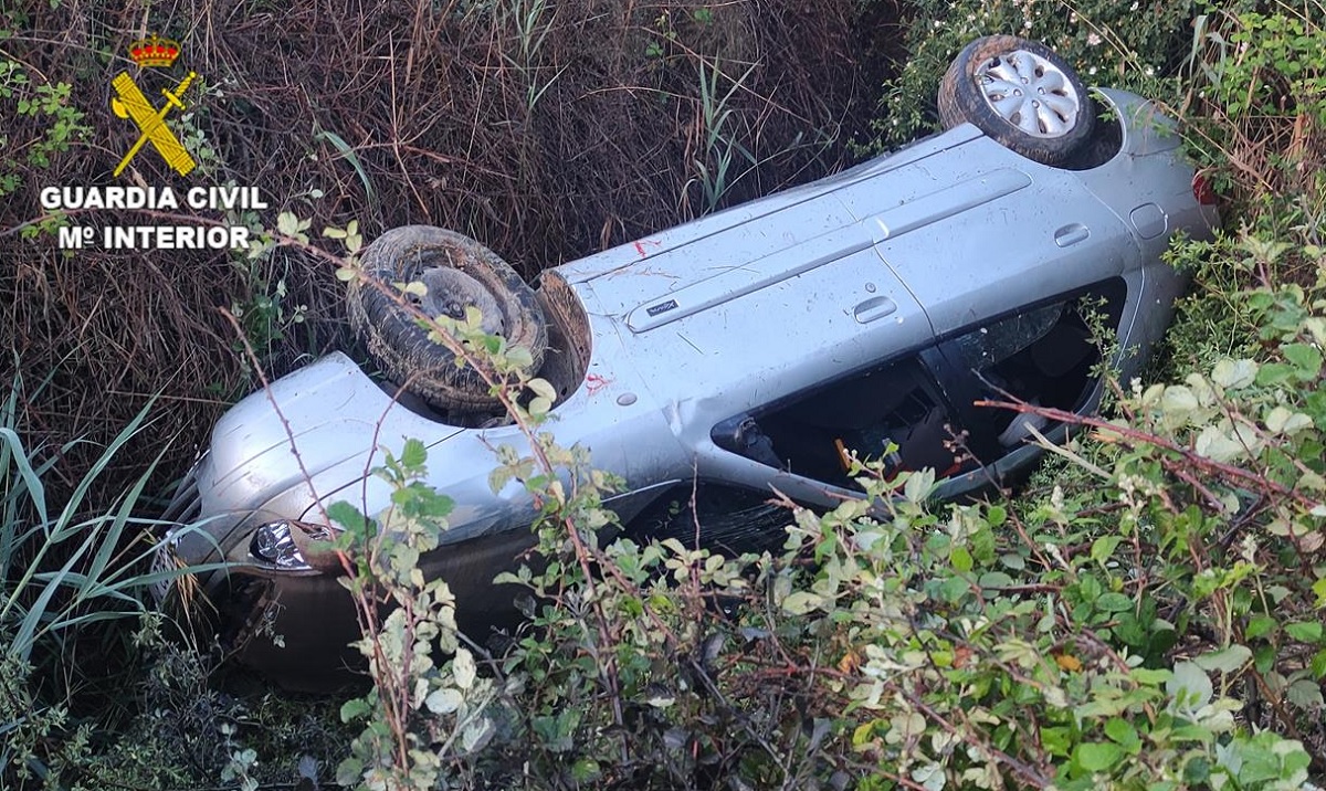 Al acudir los agentes, advirtieron que uno de los ocupantes salía del turismo, huyendo a la carrera campo a través aprovechando la oscuridad, los guardias civiles se dirigieron a examinar el interior del coche accidentado, y auxiliar a los dos ocupantes que se encontraban atrapados en el mismo, para ello se valieron de una cuerda, consiguiendo que las dos personas pudieran salir de la zanja.