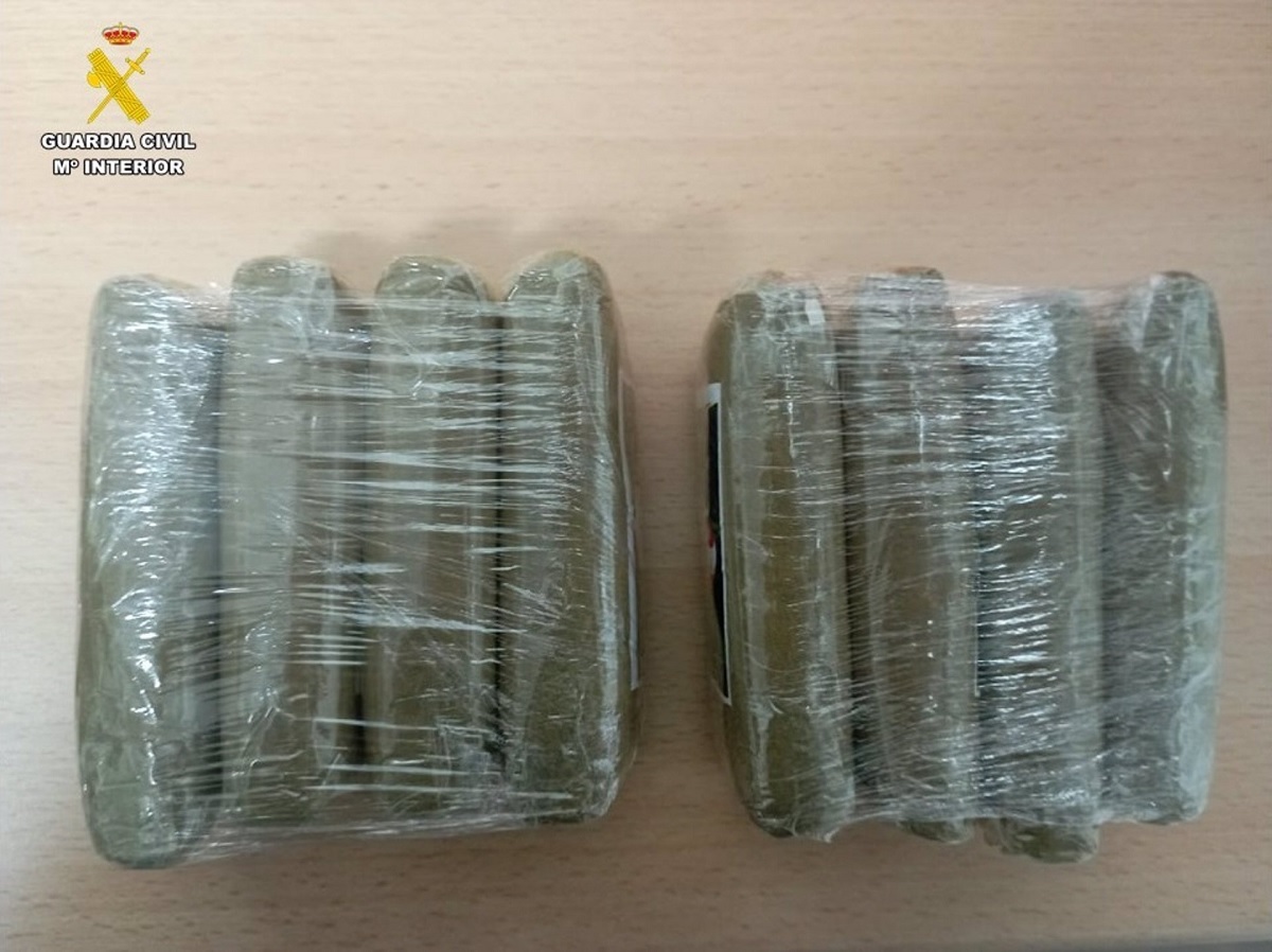 En primer lugar, se detuvo un vehículo a la altura del término municipal de Almuradiel sentido Madrid, al que tras un exhaustivo registro se le localizó bajo el reposabrazos un doble fondo en el que se hallaban ocho pastillas de hachís con un peso total de un kilogramo.