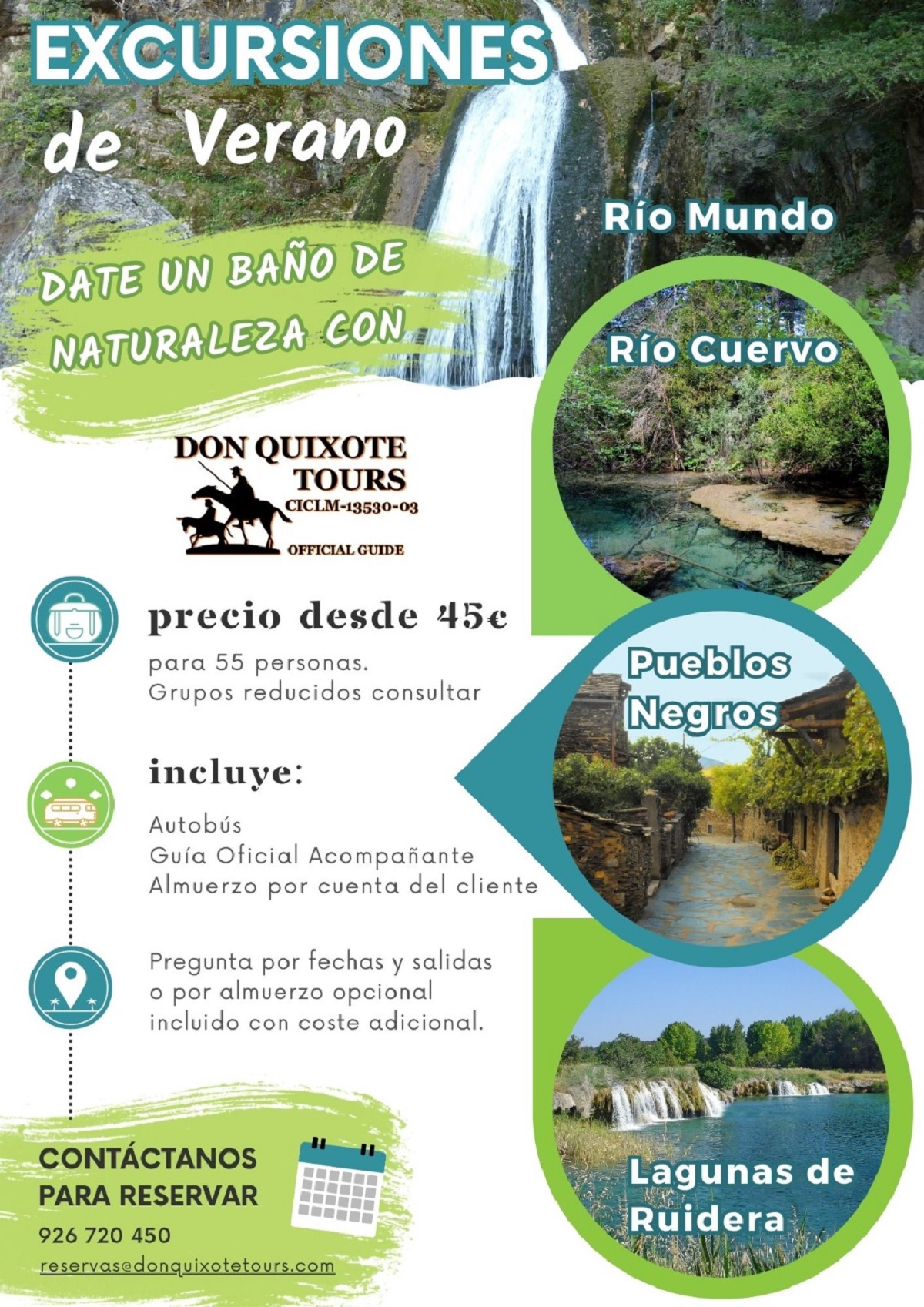 La agencia de viajes alcazareña “Don Quixote Tours” ha lanzado un paquete de excursiones de verano por entornos naturales de la región, entre los que se encuentran el Río Mundo, el Río Cuervo, los Pueblos Negros o las Lagunas de Ruidera.