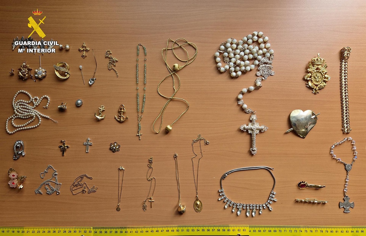 Durante la explotación de la operación ‘Uniata», se practicaron tres registros en las localidades de Los Garres-Murcia y Lorquí, también provincia de Murcia, donde se intervinieron diversas joyas, procedentes de los robos en iglesias; 5.200 euros en efectivo, en billetes y monedas de distinto valor; varios teléfonos móviles; prendas de vestir y numerosa herramienta, alguna de ella utilizada en los robos.