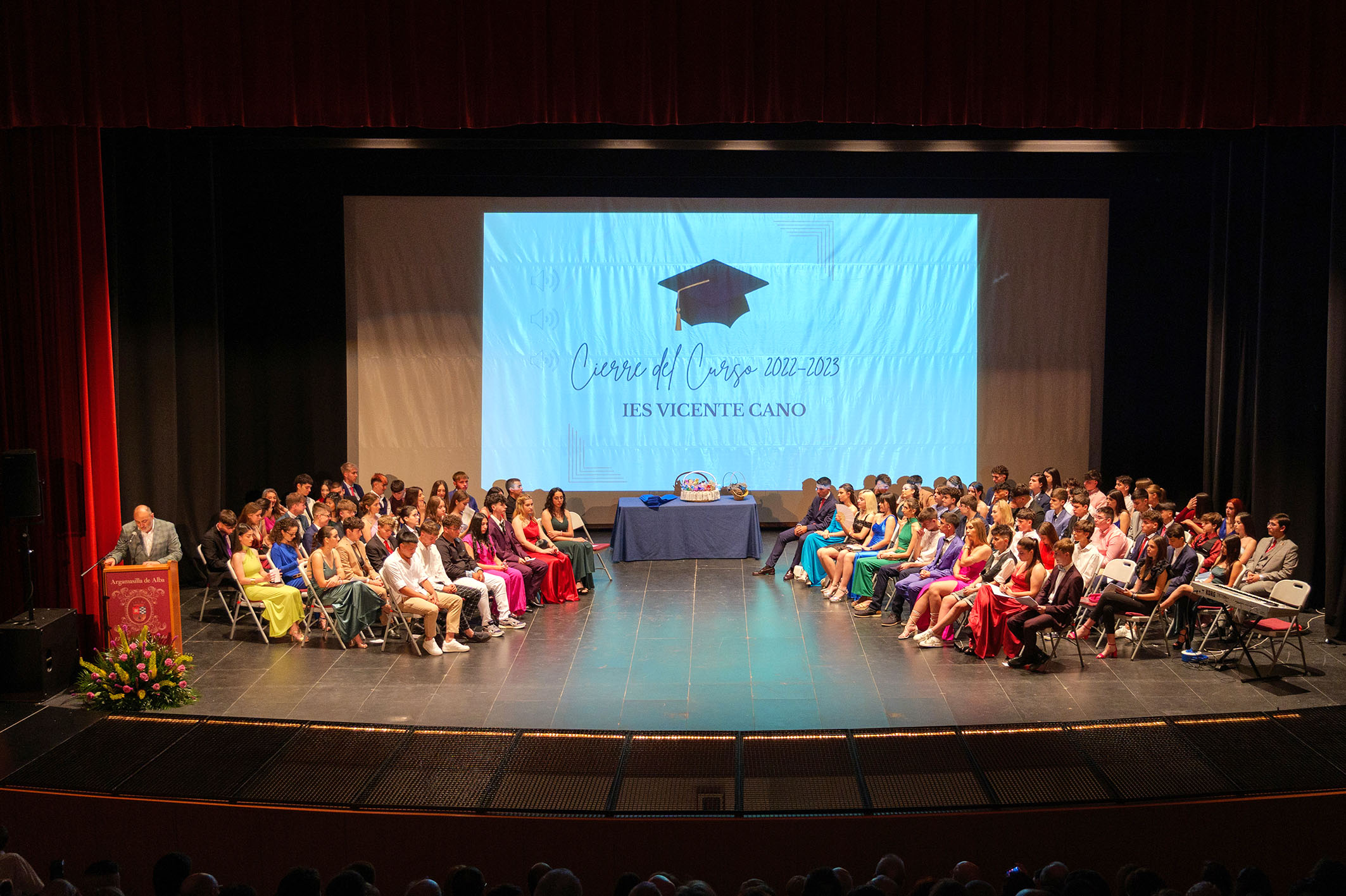 En la noche del pasado viernes 23 de junio, en el Teatro Auditorio de Argamasilla de Alba, se llevó a cabo la fiesta de graduación que marcó el cierre del curso 2022/23 en el IES Vicente Cano. Un total de aproximadamente 90 jóvenes, entre alumnos y alumnas de Bachillerato de Humanidades y Ciencias, ESO y FP Básica, fueron los protagonistas de este evento tan significativo, en la que culminaron una etapa importante de sus vidas.