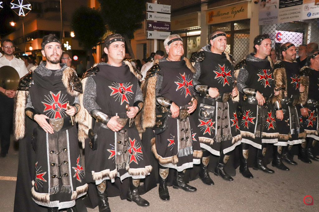 En el desfile han participado cientos de personas en los bandos moro y cristiano con sus escuadras de Al-kasar, carrozas, bloques, pelotones, boatos y ballets.
