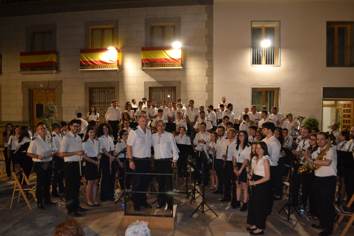 La guinda de la velada la pusieron ambas bandas cuando compartieron escenario para tocar juntos el pasodoble “Xàbia”, una composición festiva que cerró el encuentro de bandas con una ovación del público que llenaba la plaza.