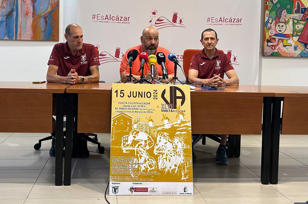 El presidente del Instituto Municipal de Deportes, Javier Ortega, y miembros del Club Alcázar Bikes, José Luis Pinar y José Mª Lizcano, respectivamente, han presentado esta nueva edición que contará con un recorrido de 60 kilómetros para ciclistas de la categoría cadete.