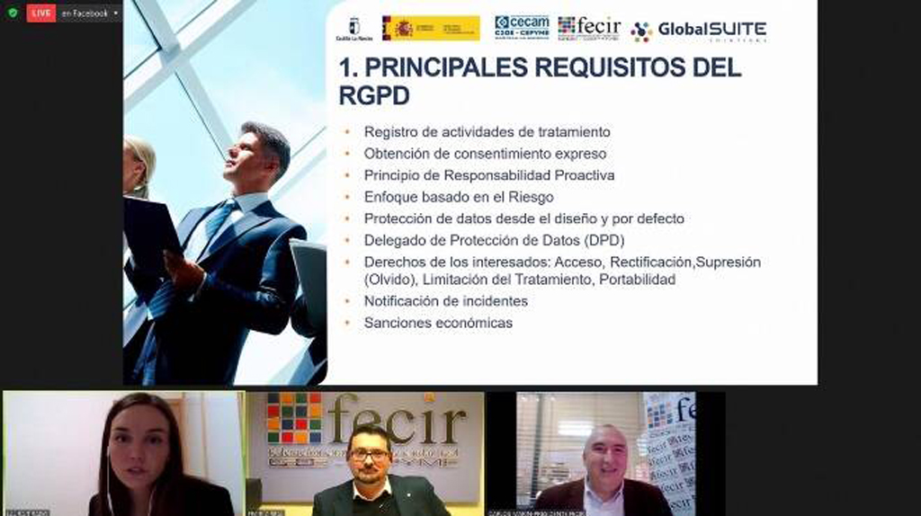 Bajo el título: «Protección de datos en la PYME: posibles conflictos en el teletrabajo, en casos de COVID y en registro horario», se celebró la segunda de las jornadas gratuitas de un ciclo, que organizadas desde la Federación Empresarial de Ciudad Real (FECIR), se centran en temas que afectan o podrán afectar a las relaciones laborales.