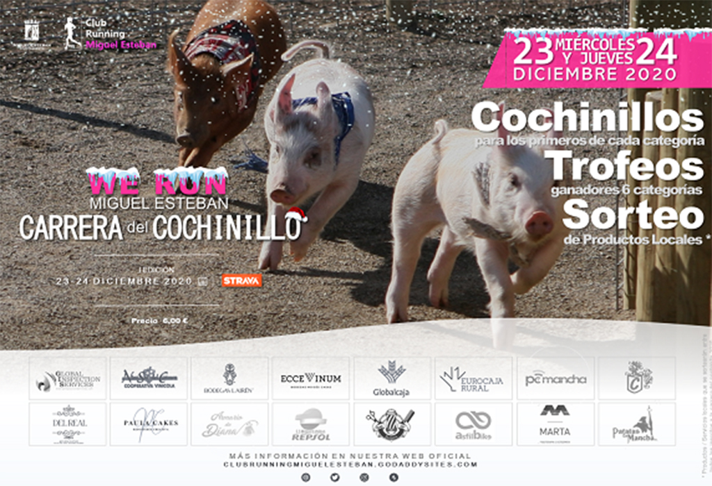 Las personas interesadas en participar en esta I Carrera del Cochinillo pueden inscribirse hasta el próximo lunes 21 de diciembre a través del Ayuntamiento de Miguel Esteban, la página web del Club Running Miguel Esteban o Deporchip. El precio de la inscripción es de 6 euros.