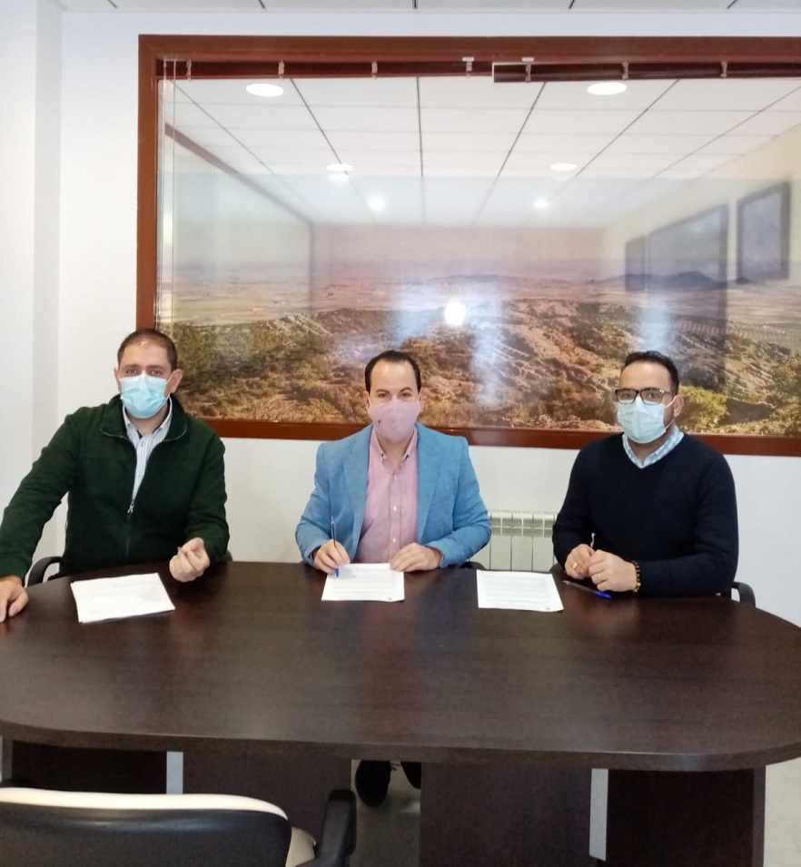 Este lunes se ha llevado a cabo la firma del convenio entre el Ayuntamiento y la Asociación del Comercio “Villa de Herencia” para la cesión del uso de la pantalla digital, instalada recientemente en un punto estratégico del municipio, para la promoción del sector comercial y empresarial del municipio.