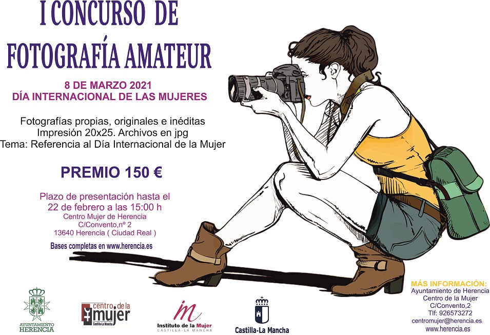 El Centro de la Mujer, dentro de la programación conmemorativa del Día Internacional de la Mujer, lanza el I CONCURSO DE FOTOGRAFÍA AMATEUR 8M, en el que habrán de presentarse fotos en los que se presente una imagen no estereotipada de mujeres, dando visibilidad a esta fecha.