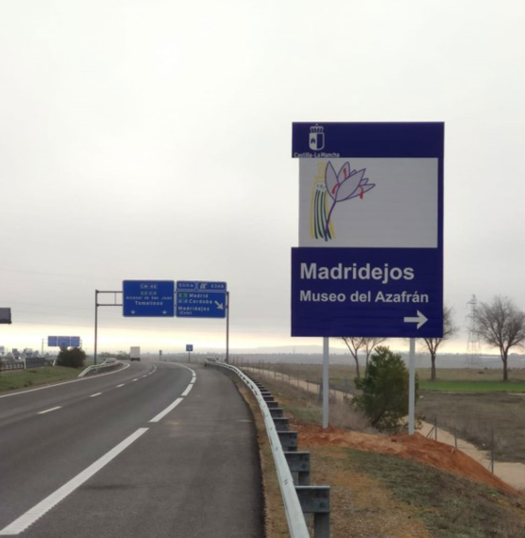 El Ayuntamiento de Madridejos en colaboración con la Junta de Comunidades de Castilla La Mancha, ha instalado paneles con señalización turística con el texto “Museo del Azafrán de Madridejos” en la autovía CM-42, en el entorno del enlace con la autovía A-4.