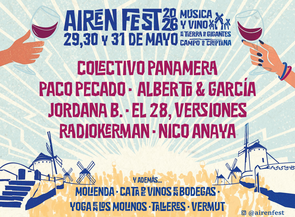 El AirénFest celebrará su quinta edición del 29 al 31 de mayo en Campo de Criptana con una propuesta que combina música, vino y patrimonio en la Sierra de los Molinos. El festival consolida así un modelo que prioriza la calidad de la experiencia frente al volumen de visitantes.