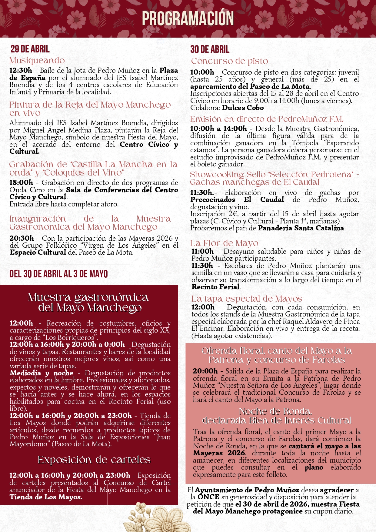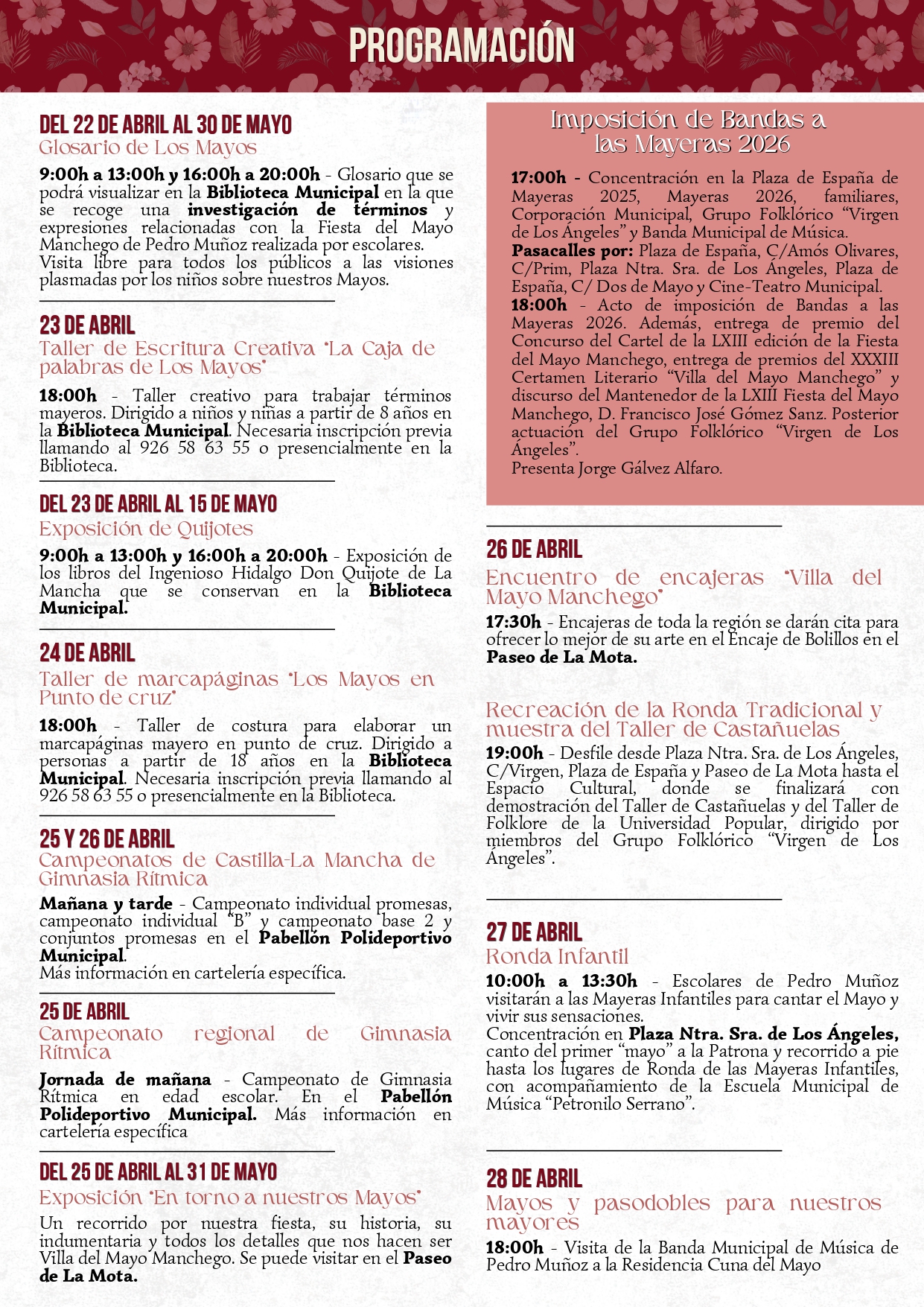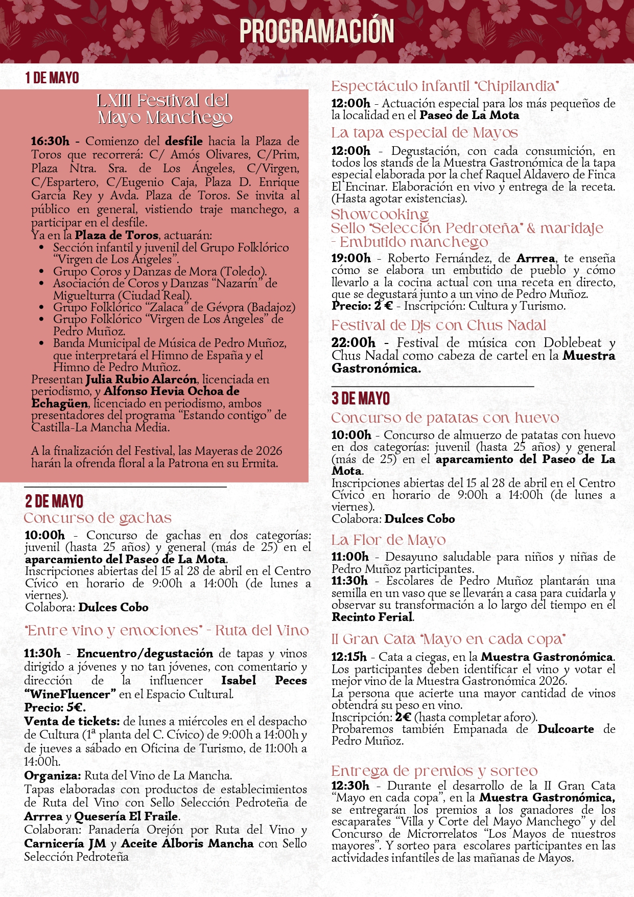 LA PROGRAMACIÓN 2026 DE LA FIESTA DEL MAYO MANCHEGO