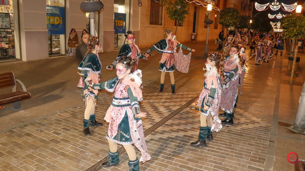 En total, participaron alrededor de 1.300 personas, organizadas en 12 comparsas. Abrió el desfile la Asociación Cultural Alma Danza de Alcázar de San Juan con “Moulin Rouge. El Cabaret de tus sueños”, seguida de la Asociación Rocío del Alba con “Las Nubias, las Guerreras del Nilo”. En tercer lugar desfiló la Asociación Cultural A Compás con “Vikingos”, cerrando las comparsas locales Spirit Dance by Company con “El pacto de la Luna de sangre… El tiempo se abre”.