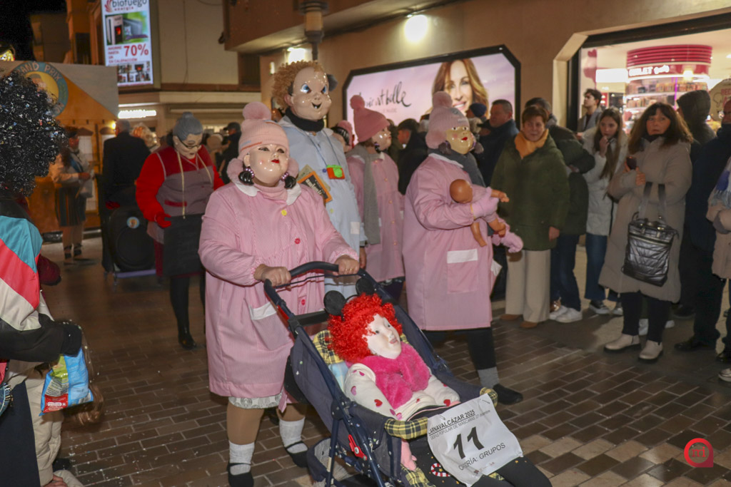 A lo largo del desfile pudieron verse temáticas recurrentes y disfraces elaborados, siempre desde el humor y la creatividad, como el Grand Prix Moñigón, las tradicionales Tortas de Alcázar o los viajes del Porvenir a Benidorm, entre muchas otras propuestas originales. El ambiente estuvo animado musicalmente por las charangas Los Pelorata, Los Deskara2 y Los Notas, que acompañaron el recorrido.
