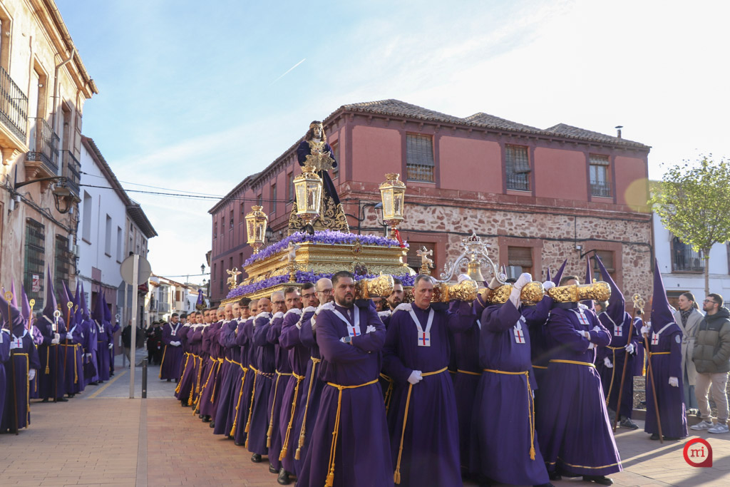 Considerada la procesión más multitudinaria de la localidad, reunió a miles de fieles y devotos que vivieron con intensidad cada instante del recorrido. Este año, el itinerario volvió a incorporar la calle Tío Rostra en sustitución del primer tramo de Reyes Católicos, permitiendo una estampa inédita en la que Jesús Nazareno pudo “mirar” hacia la Virgen del Rosario Coronada a través del Camarín, aportando un nuevo matiz simbólico al desfile.