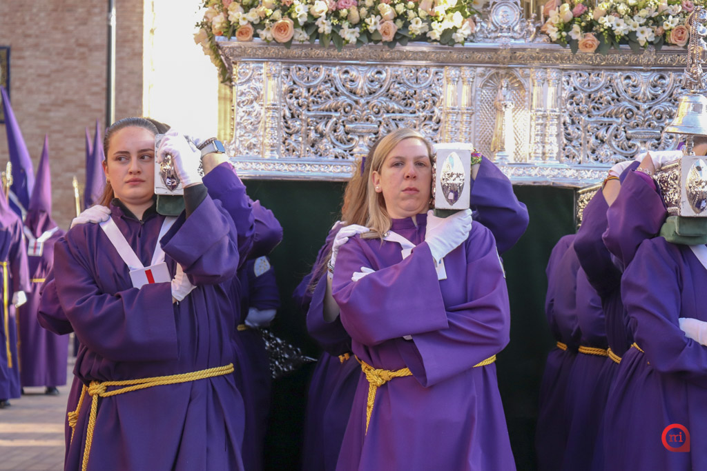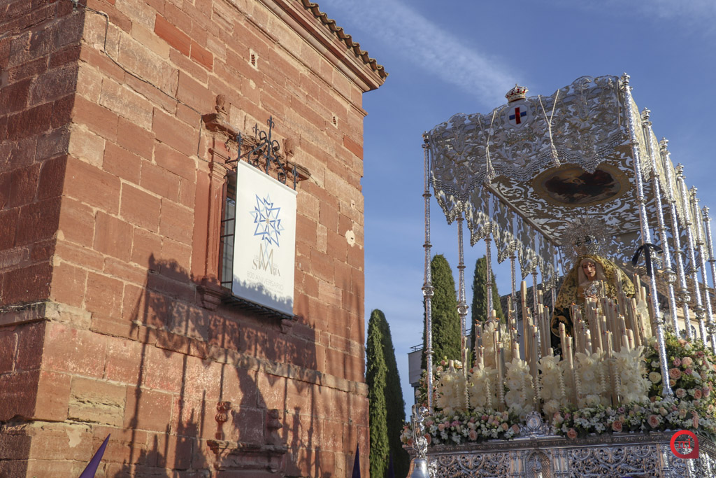 Uno de los momentos más emotivos volvió a vivirse a las puertas del Convento de las Hermanas de la Cruz, donde los pasos realizaron su tradicional parada, despertando la emoción entre los presentes. Pero si hay un punto especialmente significativo es el Altozano de la Inmaculada, escenario del esperado encuentro entre la Madre y el Hijo, donde cada año los sentimientos afloran con fuerza entre el público congregado.