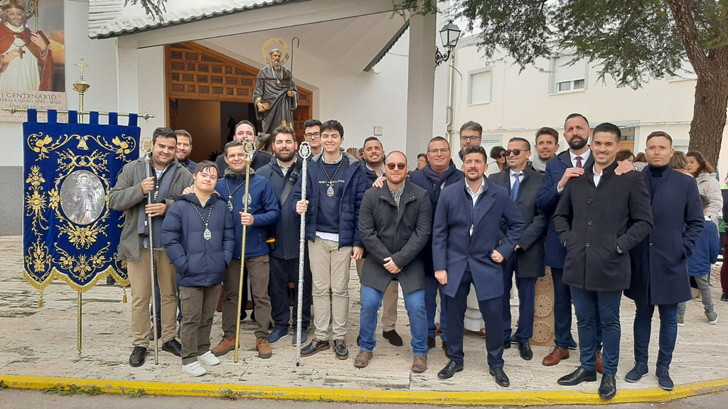 Este año y como novedad, la Hermandad ha estrenado un estandarte confeccionado en terciopelo azul y bordados en un taller de Mota del Cuervo.