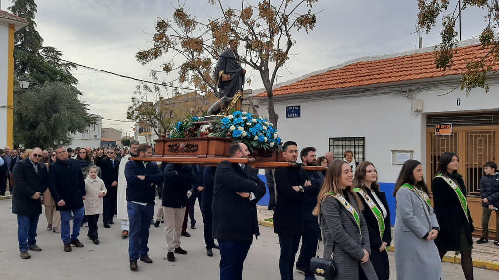 Los actos centrales se sucedieron este domingo con la celebración eucarística en honor al Santo, oficiada por el párroco de la localidad, Rafael Ruiz, y participada por las autoridades locales, la reina y damas y numerosos vecinos. Tras la función religiosa tenía lugar la bendición de mascotas y animales y la procesión de la imagen del Santo por la localidad, acompañada por la música de la Agrupación Musical Jesús Nazareno de Campo de Criptana.