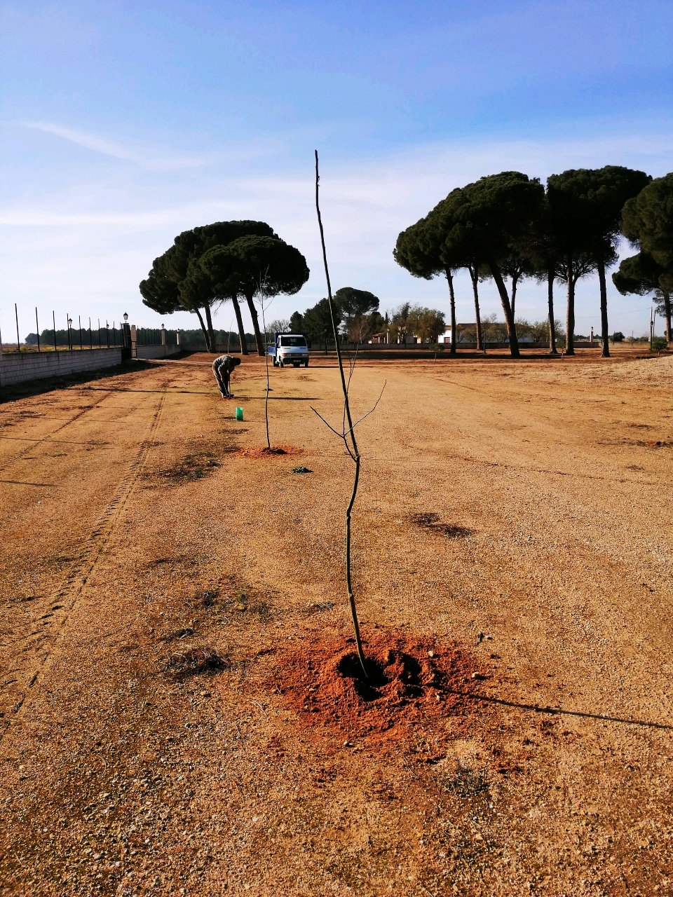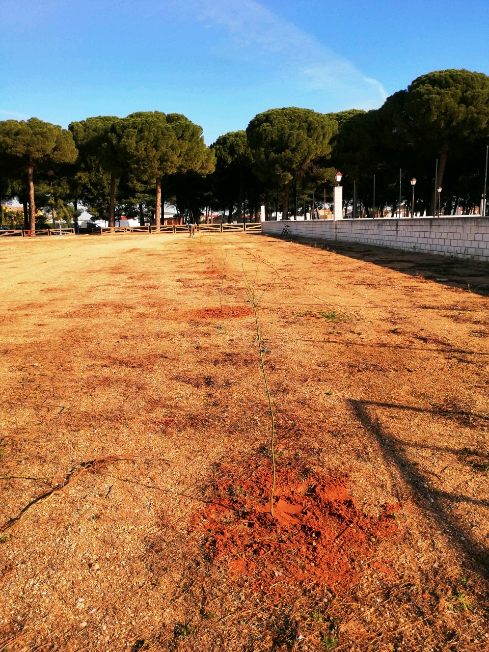 A su vez, en la zona libre, alrededor de las pistas polideportivas, se han plantado ejemplares de árboles Sophora, creando una nueva línea de vegetación que en nada perjudica a los pinos piñoneros del entorno, y que en un futuro será un punto más de sombra.