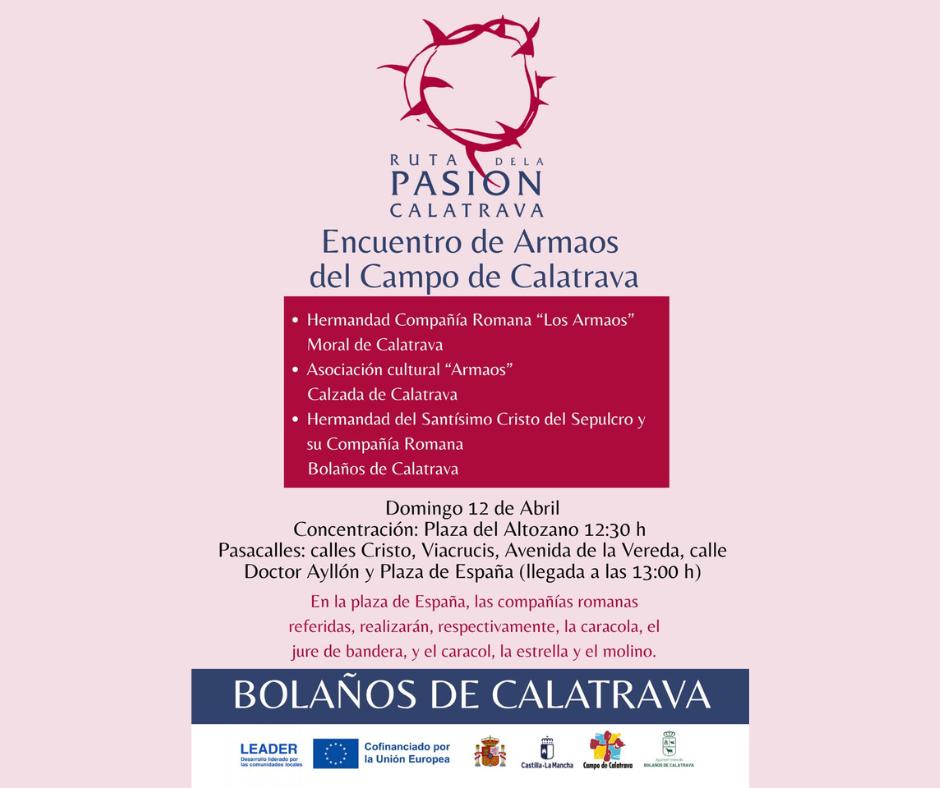 Sobre la Ruta de la Pasión Calatrava La Ruta de la Pasión Calatrava es un itinerario turístico-cultural que engloba los municipios del Campo de Calatrava y sus celebraciones de Semana Santa. Esta ruta invita a descubrir la singularidad de las tradiciones de la comarca, marcadas por la presencia de las compañías romanas o «armaos», las escenificaciones de la Pasión y la riqueza del patrimonio histórico y artístico de la zona.
