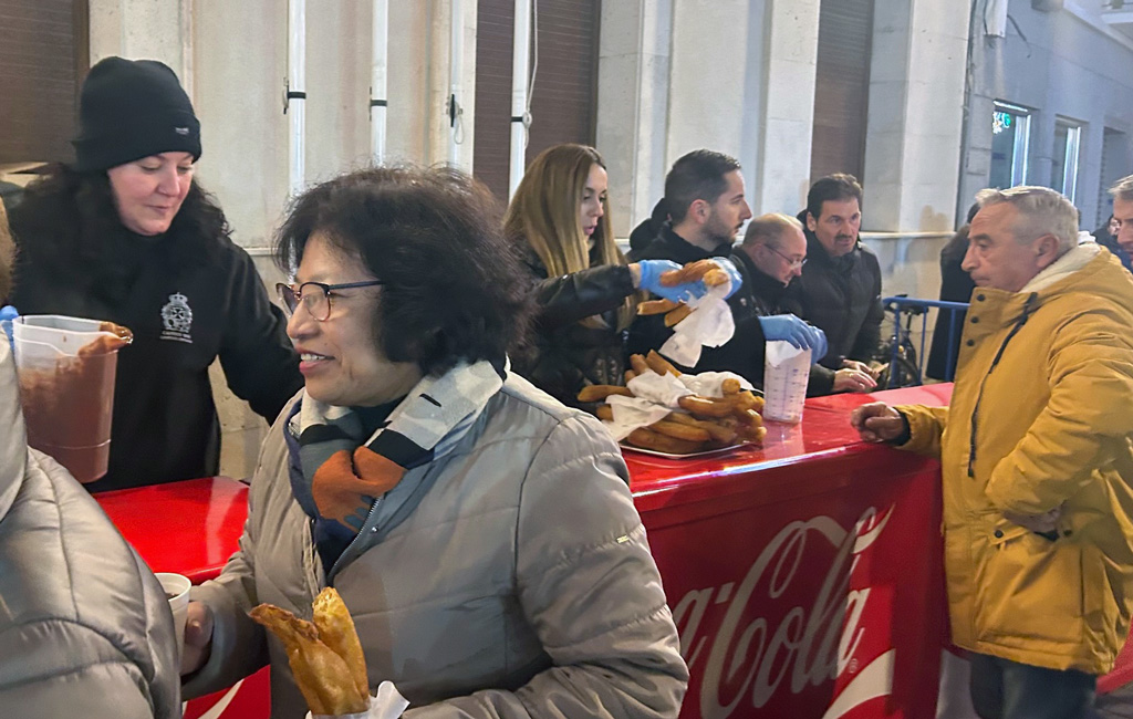 De forma paralela al sorteo y entrega de premios, ha tenido lugar la chocolatada solidaria, organizada por la junta directiva de la cofradía de Jesús Cautivo, quienes han repartido 1.200 porras y 600 litros de chocolate al precio de 3 euros, y cuya recaudación se destinará a las obras de la nueva casa de hermandad.