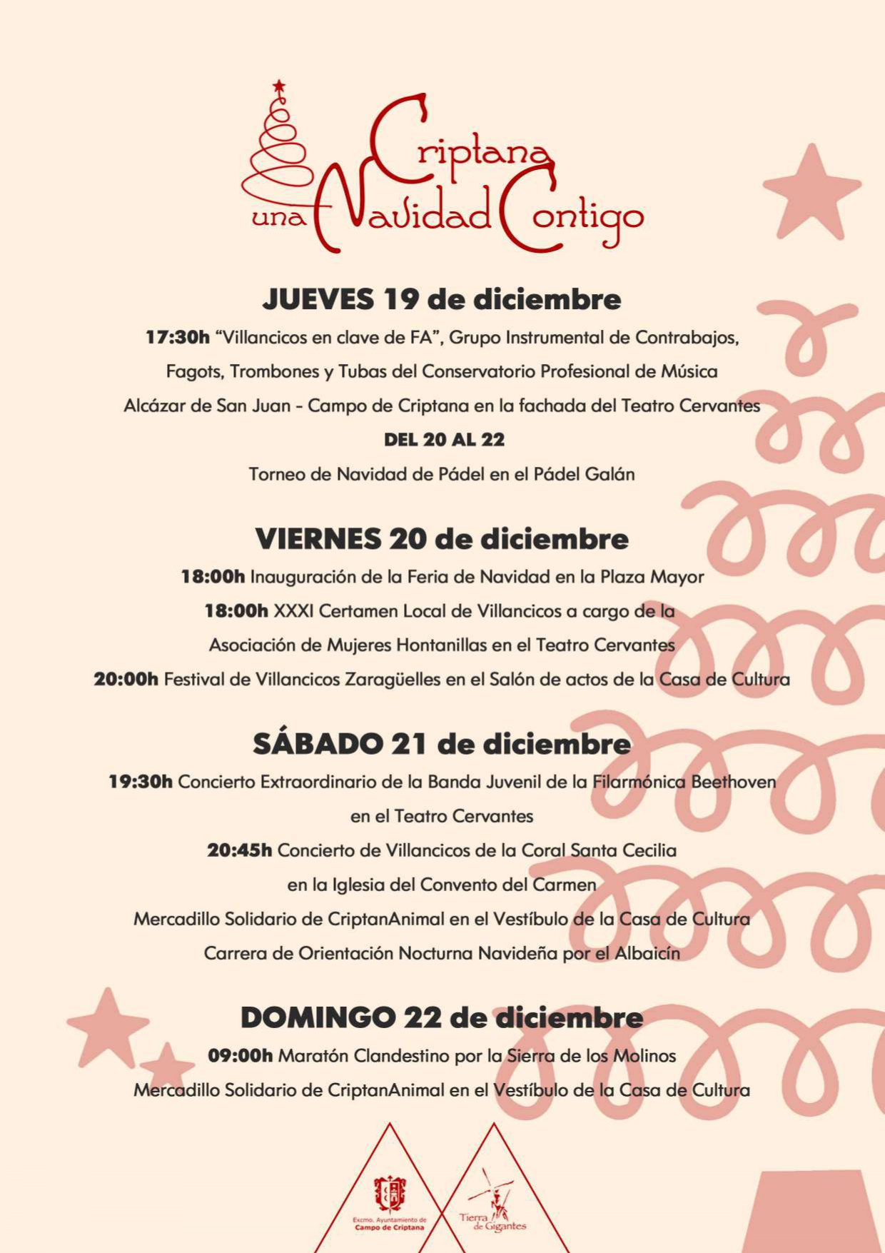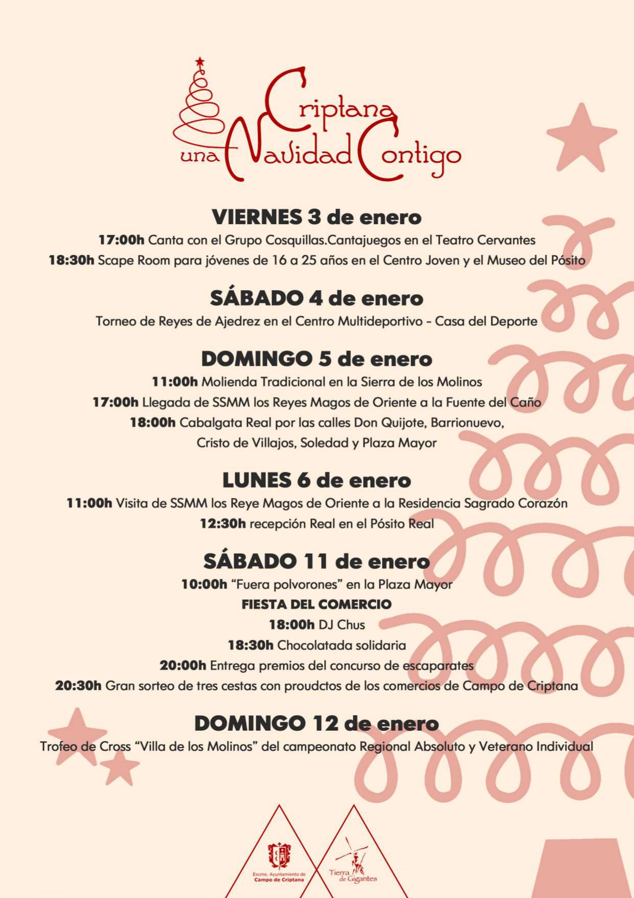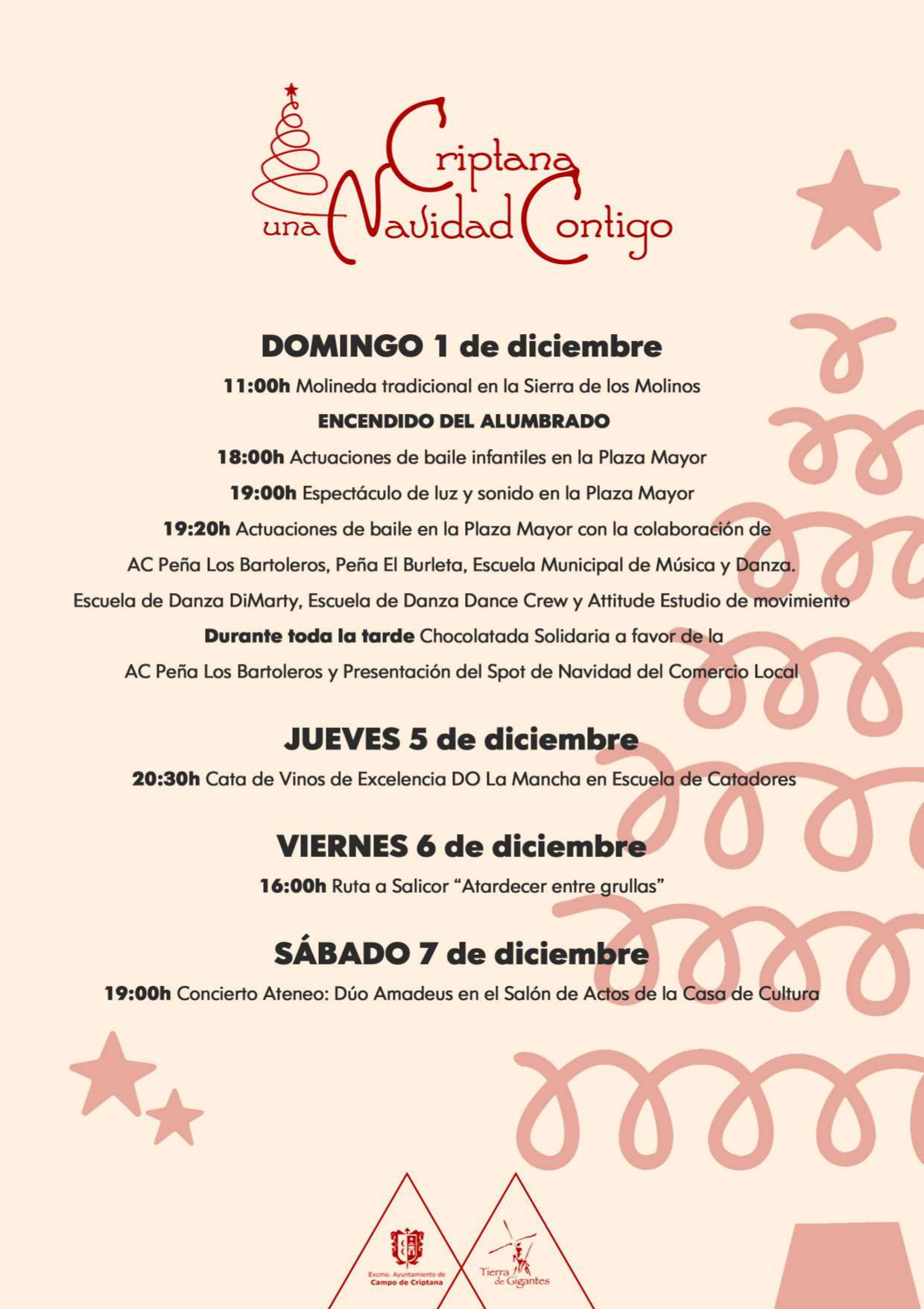 El alumbrado se encenderá el domingo, y hay actividades programadas hasta el 12 de enero tales como teatro, cantajuegos, cine, villancicos, bailes del vermut, catas de productos típicos locales, actividades deportivas de lo más variado, juegos y actividades infantiles, concursos, exposiciones y conciertos de Navidad, así como dos Cabalgatas, una previa a la llegada de los Reyes Magos y la propia de Sus Majestades: “Este año los Reyes entrarán por la Fuente del Caño y por todo el barrio del Cristo, hasta llegar a la Plaza del Ayuntamiento”, ha avanzado el concejal.