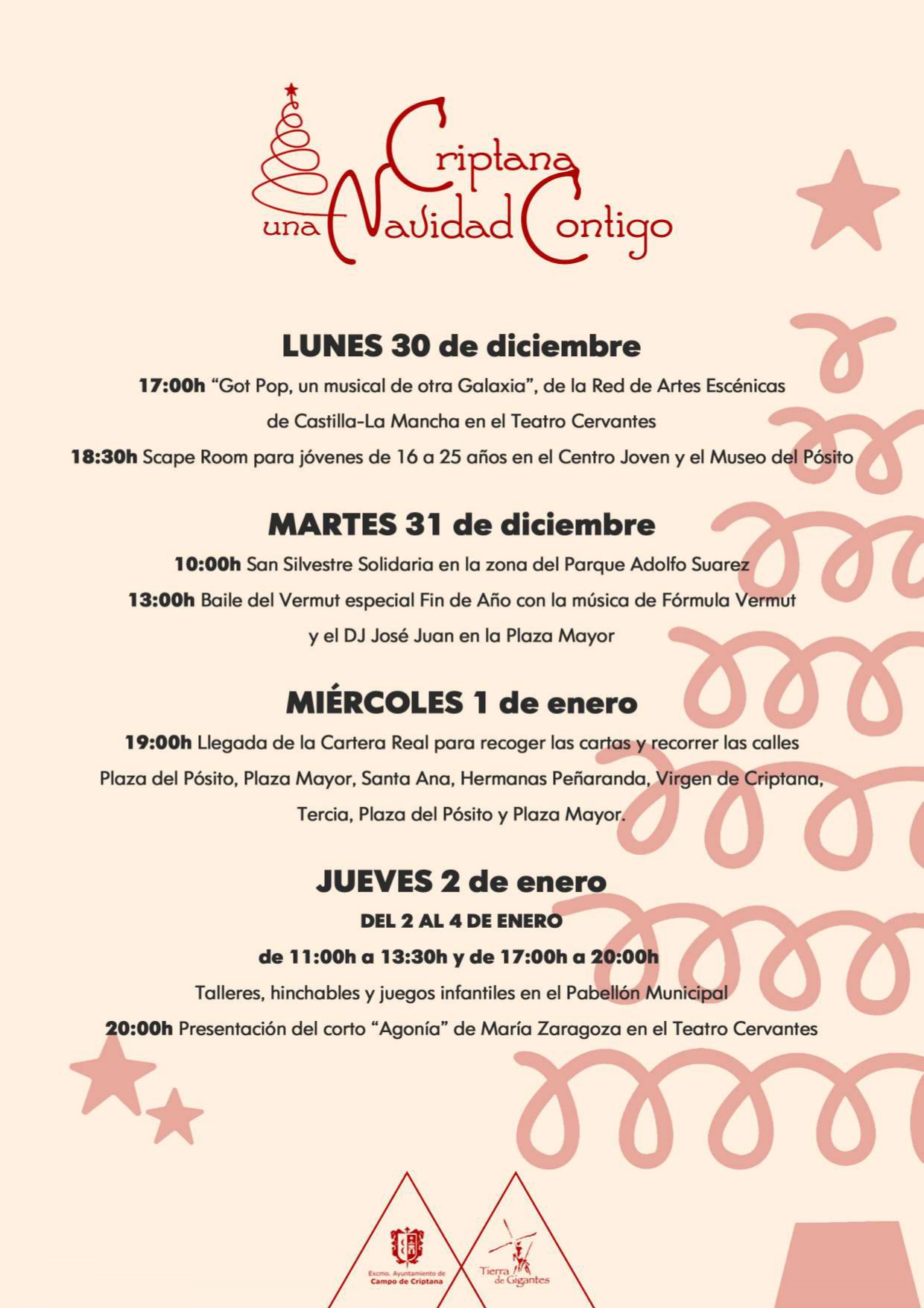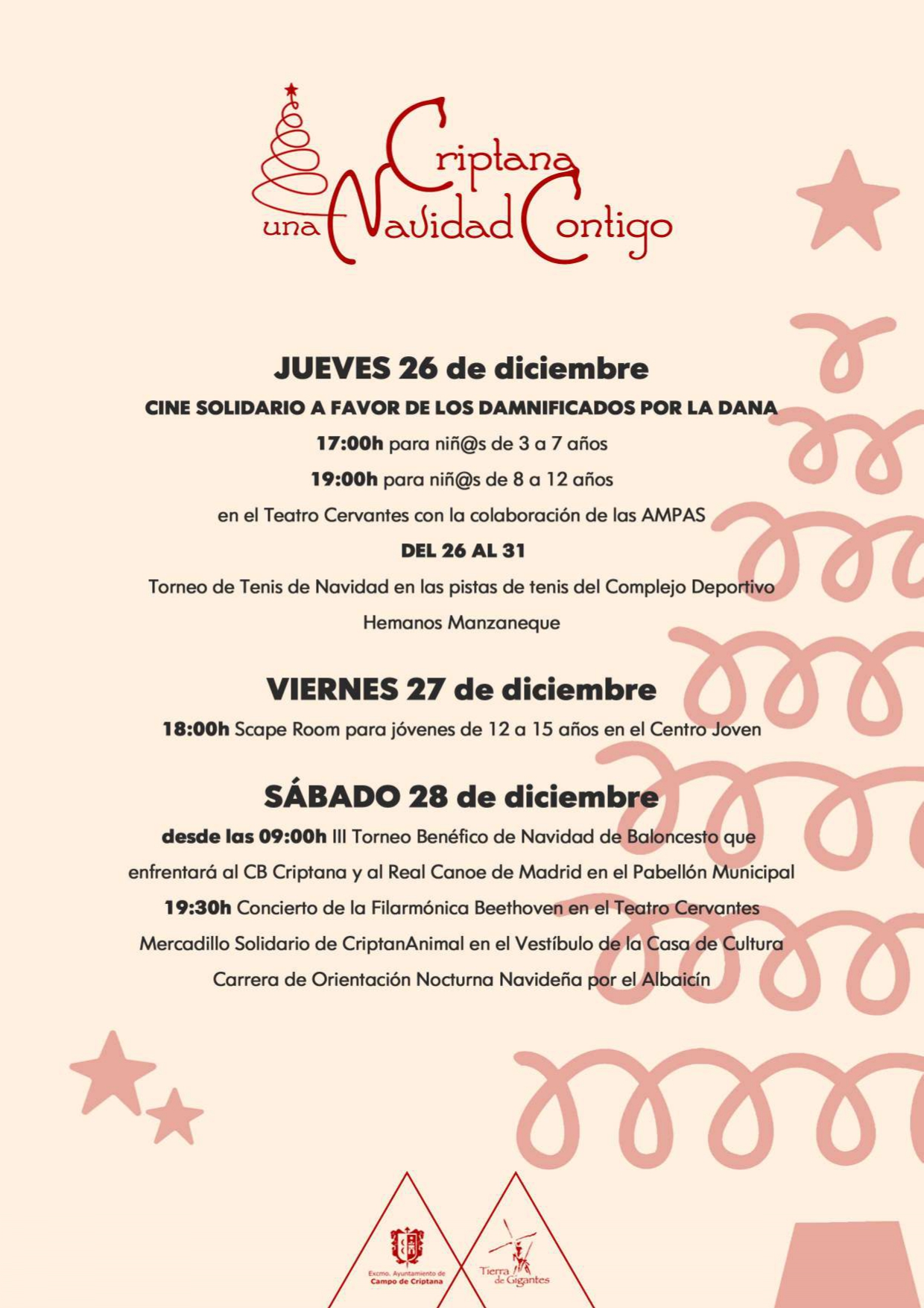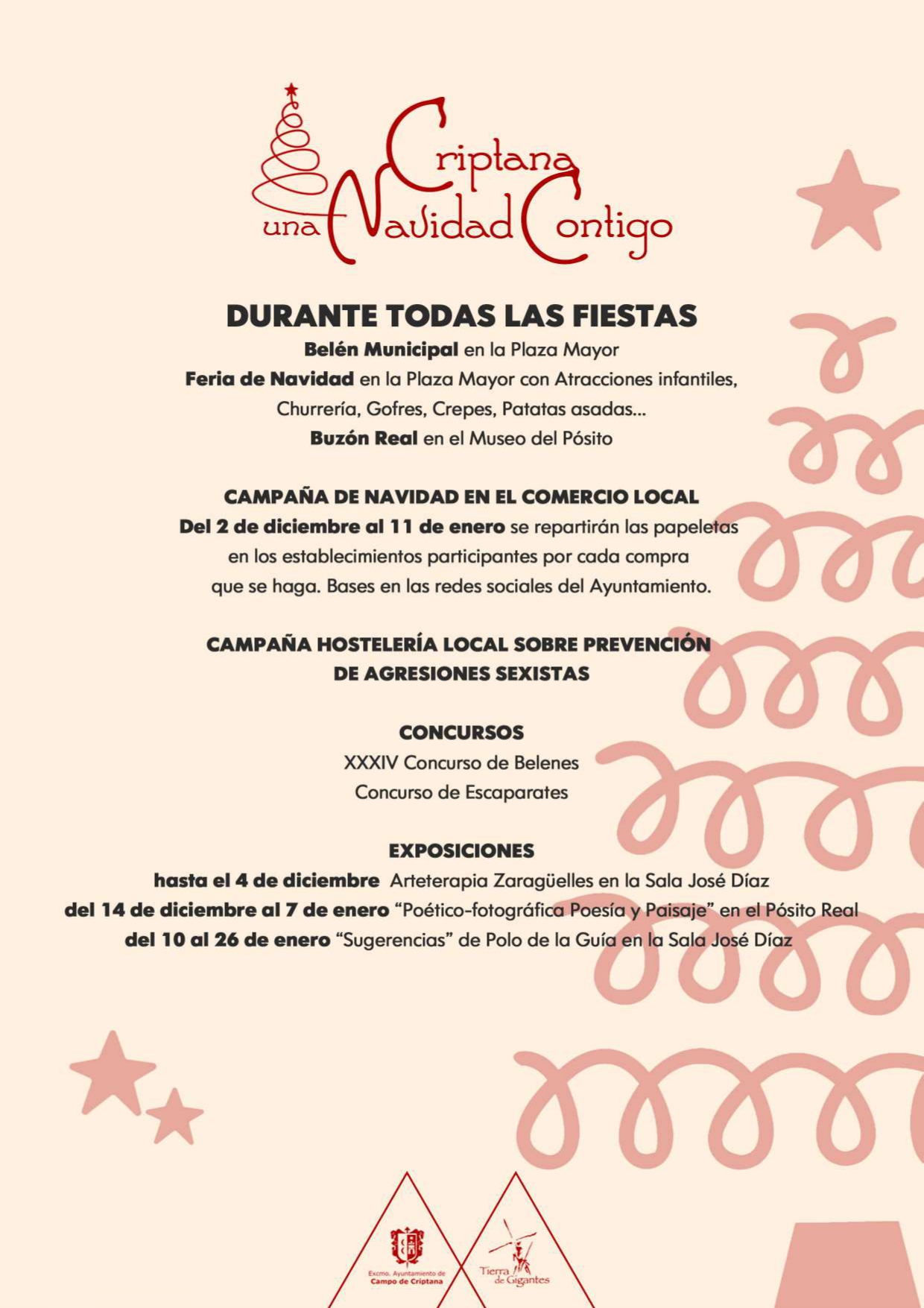 El alumbrado se encenderá el domingo, y hay actividades programadas hasta el 12 de enero tales como teatro, cantajuegos, cine, villancicos, bailes del vermut, catas de productos típicos locales, actividades deportivas de lo más variado, juegos y actividades infantiles, concursos, exposiciones y conciertos de Navidad, así como dos Cabalgatas, una previa a la llegada de los Reyes Magos y la propia de Sus Majestades: “Este año los Reyes entrarán por la Fuente del Caño y por todo el barrio del Cristo, hasta llegar a la Plaza del Ayuntamiento”, ha avanzado el concejal.