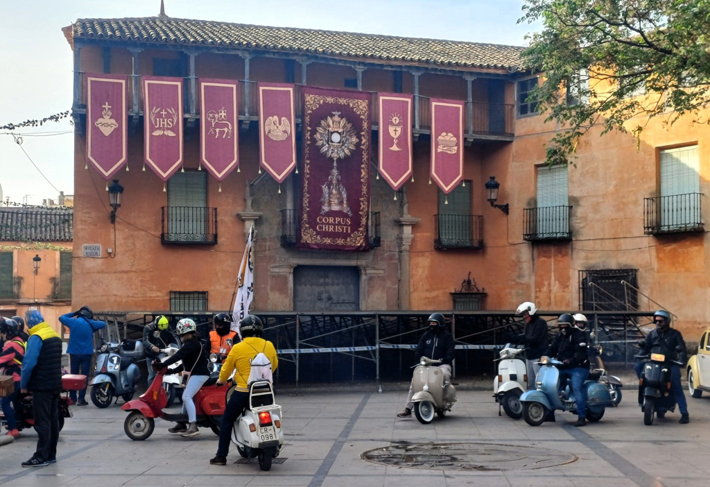 El encuentro dio comienzo en la mañana del sábado con la recepción de participantes y sus Vespas en la Plaza del Ayuntamiento de Campo de Criptana. Desde allí, los asistentes iniciaron la conocida Ruta de los Molinos en dirección a Consuegra, completando un recorrido aproximado de 90 kilómetros.