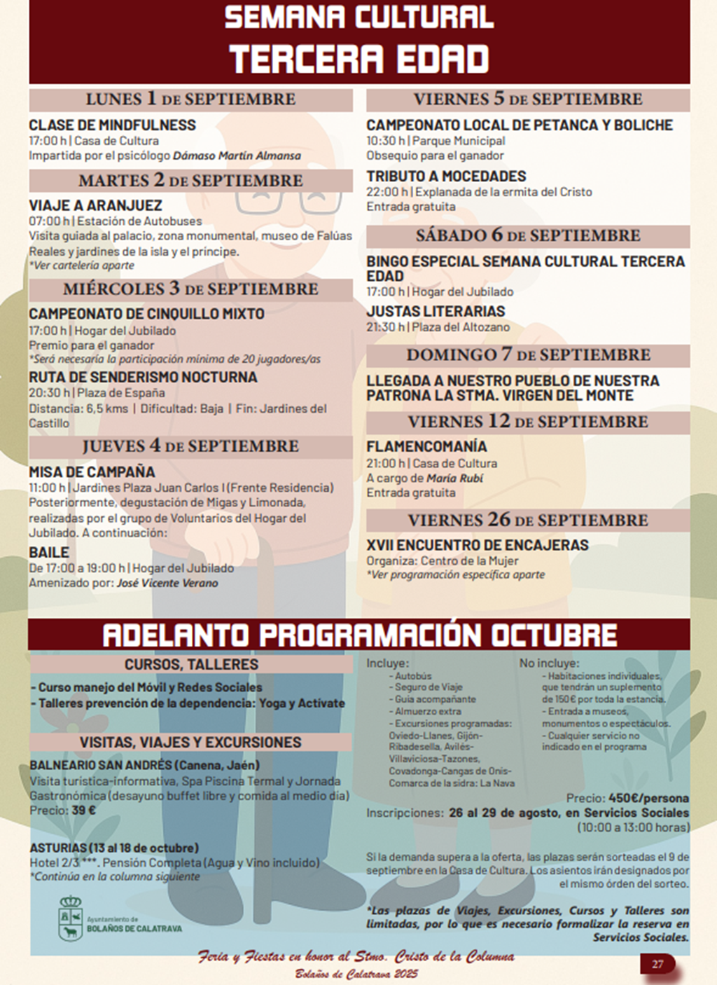 Desde el Ayuntamiento de Bolaños de Calatrava se quiere agradecer la implicación de todas las entidades y voluntarios que han hecho posible esta programación, cuyo objetivo principal es reconocer la contribución de las personas mayores al desarrollo de la localidad y promover su participación activa en la vida cultural, social y recreativa.