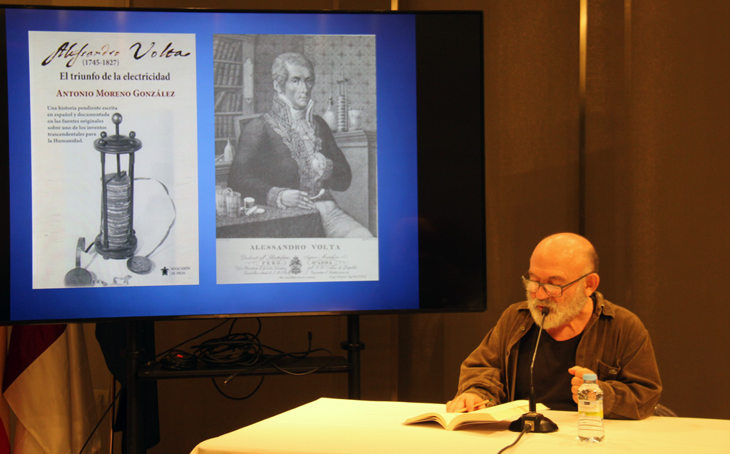 Tras exponer las líneas maestras de este Plan Municipal de Cultura Científica, tenía lugar la presentación del libro “Alessandro Volta. El triunfo de la electricidad”. Una obra escrita por el concejal y presidente del Patronato Municipal de Cultura, Antonio Moreno, que contó como maestro de ceremonias de su puesta de largo, con el actor alcazareño, Emilio Gavira, encargado de presentar esta obra que trata la vida del inventor de la pila eléctrica, Alessandro Volta. «Una figura poco conocida cuyo invento es de enorme trascendencia para la forma en que conocemos la electricidad hoy en día, especialmente para mí que soy un hombre de letras y la ciencia la tenía apartada hasta la lectura de este gran libro», explicaba Gavira.