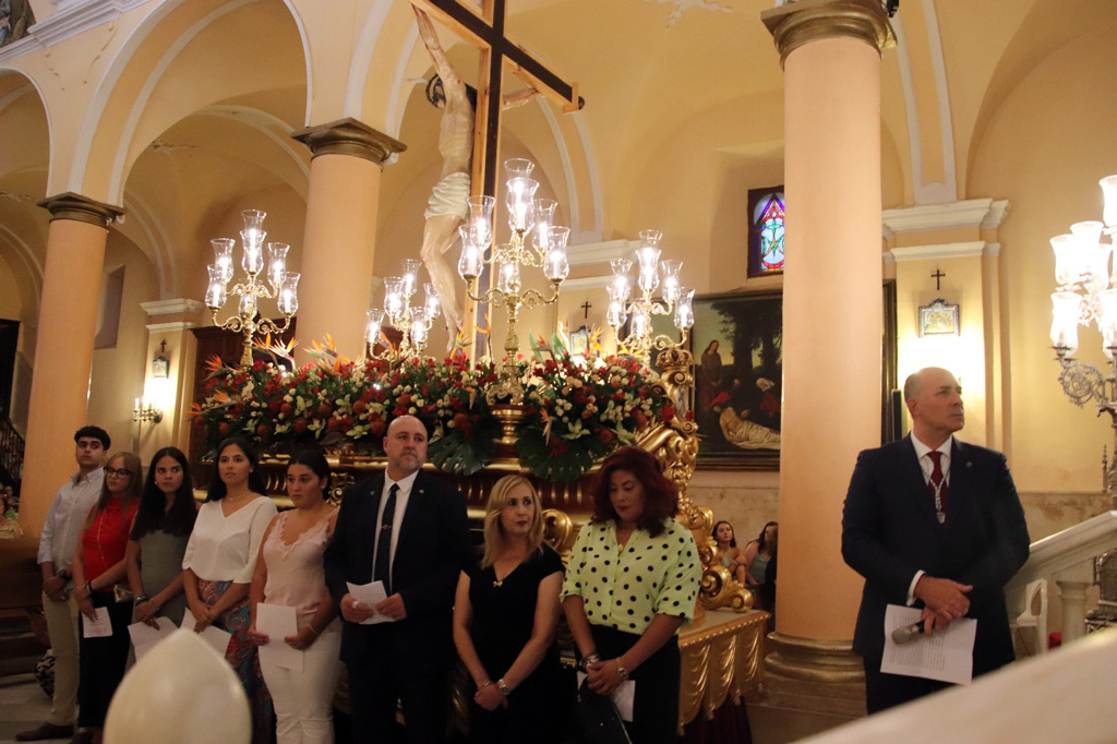 Uno de los momentos destacados de la jornada fue la imposición de medallas a los nuevos mayordomos, servidores y camareras del Santísimo Cristo de Gracia y de la Virgen de la Piedad, cuyos nombres son: