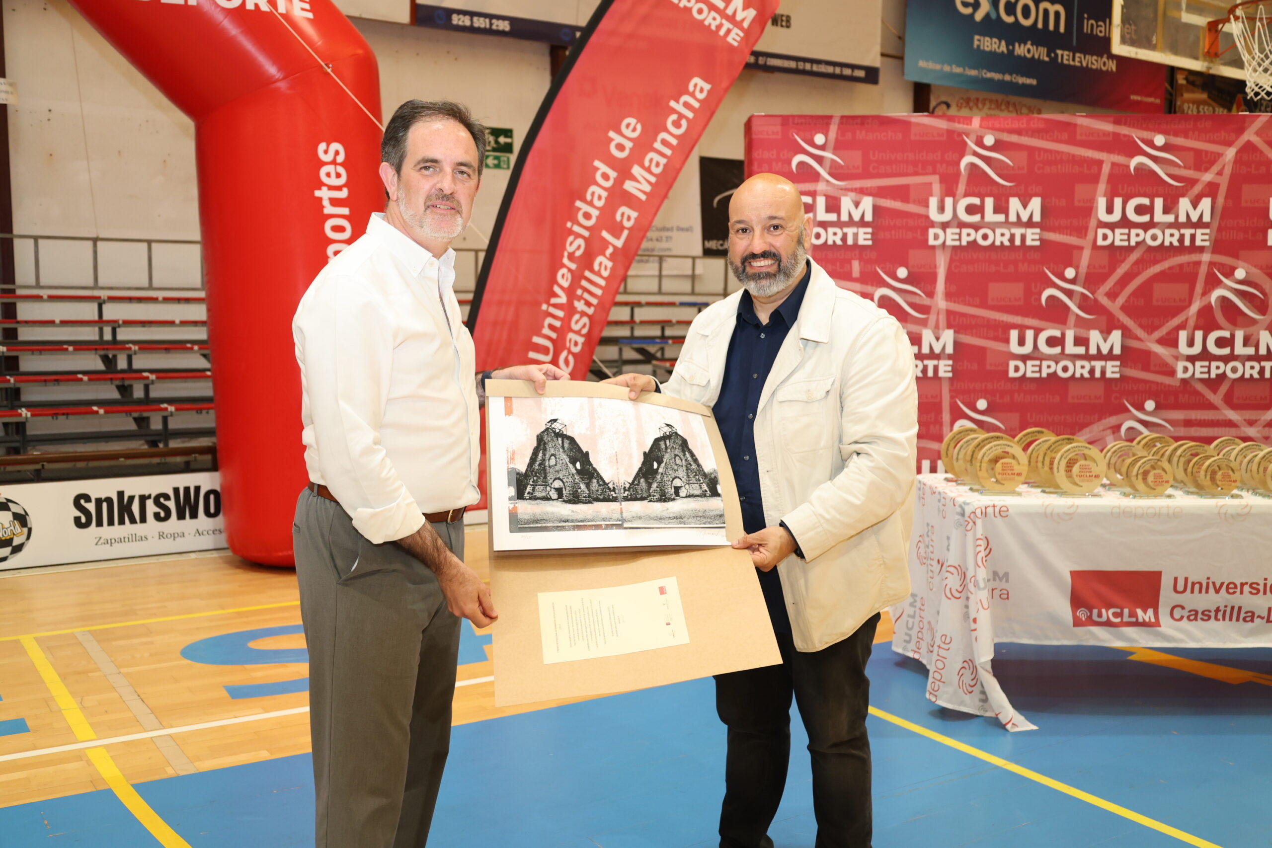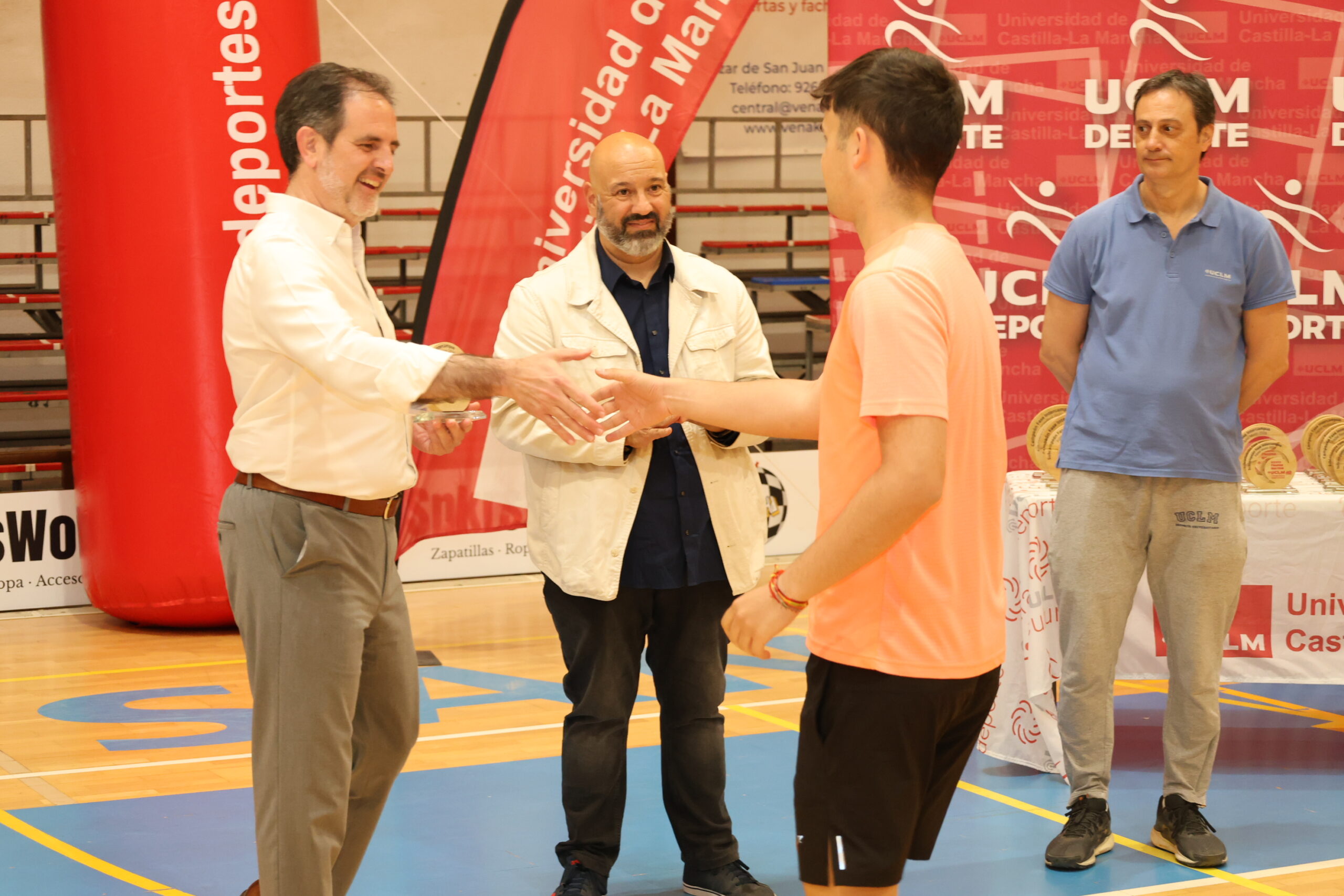 El acto de entrega de premios ha contado con la presencia del teniente de alcalde de Alcázar de San Juan, Javier Ortega, quien ha acompañado al vicerrector de Cultura, Deporte y Compromiso Social, César Sánchez, en la entrega de trofeos a los equipos ganadores y finalistas.