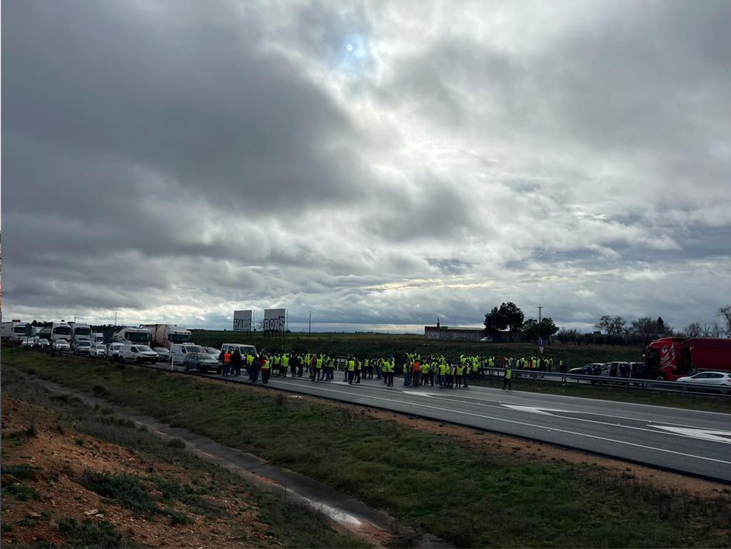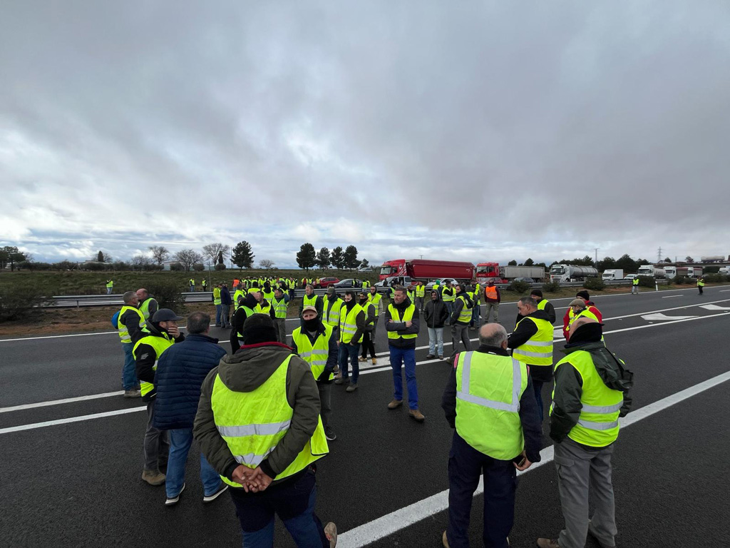 Nueva jornada de movilizaciones y nuevos cortes de carreteras, concretamente está cortada la CM-42 (Autovía de los Viñedos) en las inmediaciones de Alcázar de San Juan, donde hay apostados más de 300 tractores.