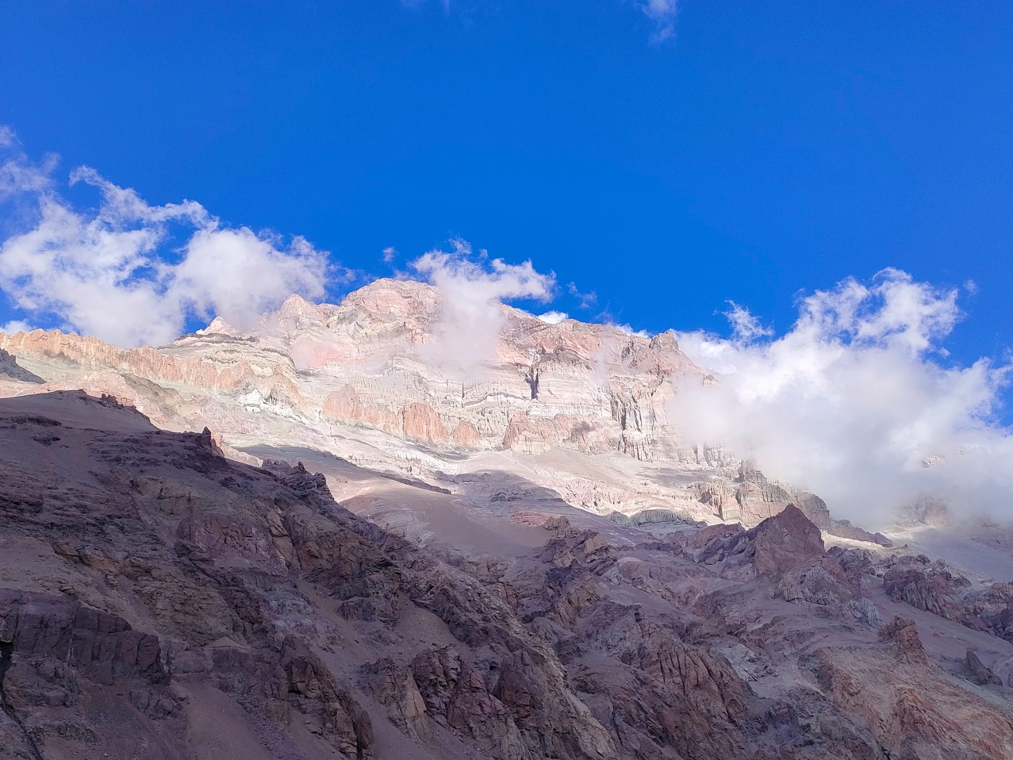La subida, que se produjo entre el pasado fin de semana y el inicio de ésta, ha estado llena de dificultades: “Sin duda, esta experiencia ha cambiado totalmente mi concepto sobre la montaña”, confiesa el montañista. “Cuando uno empieza a hacer este deporte, comienza por unas rutas y luego va subiendo de nivel con el Aneto, el Teide o el Mulhacén. Pero aún así no sabes lo que es una montaña hasta que te enfrentas a estar días y días en una como esta, en la que cada hora del día estás en una balanza que dictamina si vas a estar en posibilidad de subirla o no, sobre todo en cuanto a climatología y también al estado de tu cuerpo. Si has podido descansar o no, si la alimentación la asimilas bien, la sensación de pánico, el mal de altura, la ansiedad… todo eso afecta mucho”.