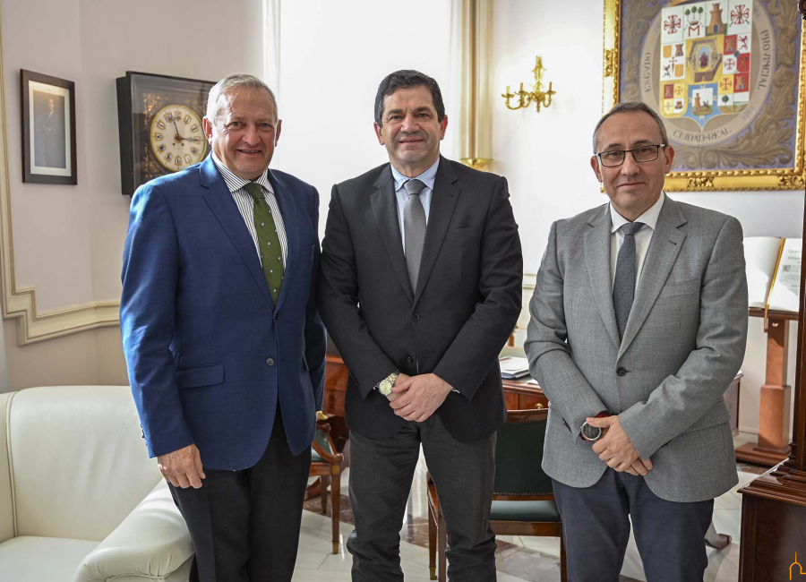 El presidente de la Diputación de Ciudad Real, Miguel Ángel Valverde Menchero, ha mantenido esta mañana una reunión, a modo de primera toma de contacto, con el presidente y el director general de Cooperativas Agro-alimentarias de Castilla-La Mancha, Ángel Villafranca y Juan Miguel del Real, respectivamente.