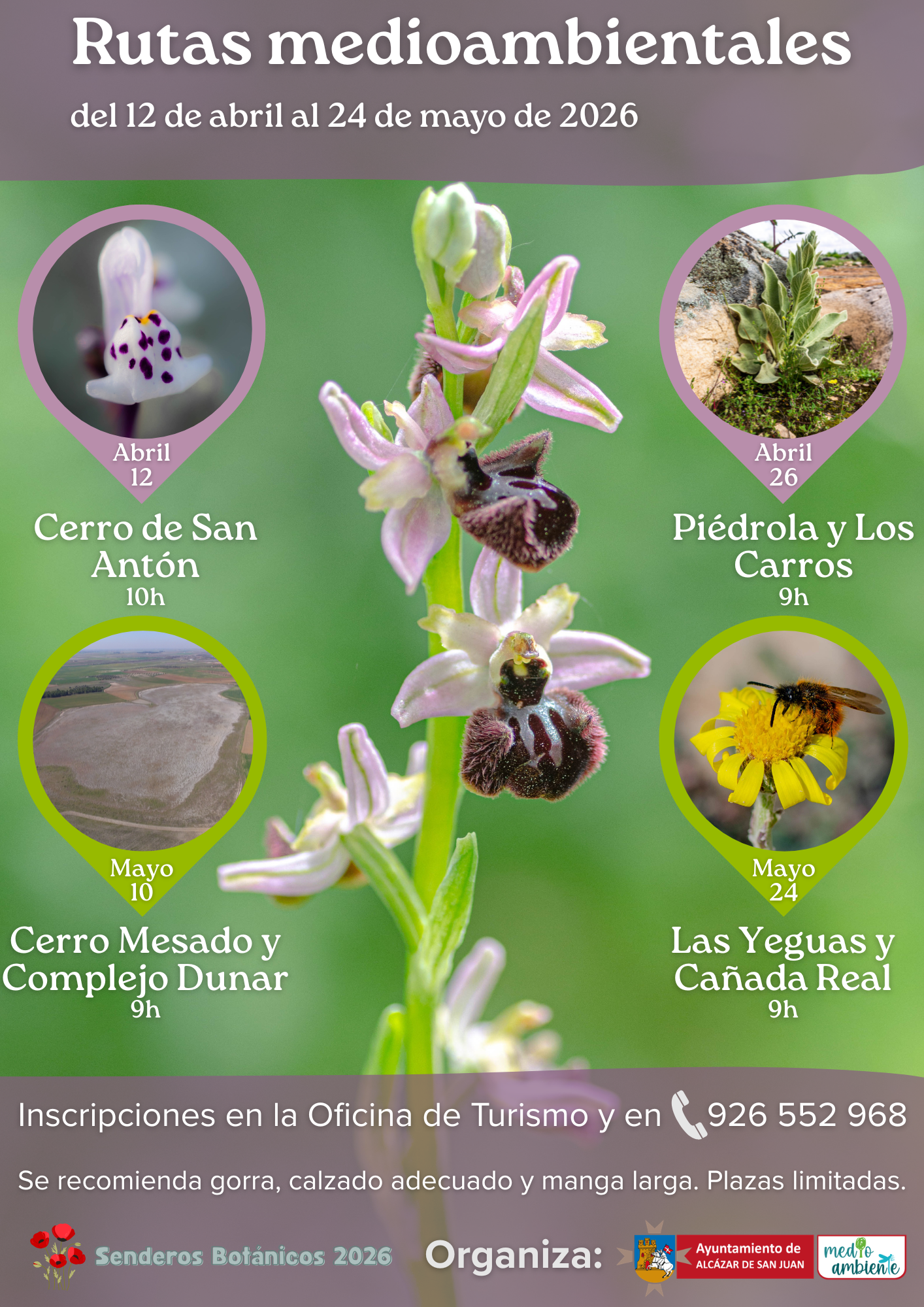 Como novedad en esta edición, se incorpora un enfoque didáctico mediante el uso de guías de campo sencillas, que permitirán a los participantes identificar distintas familias botánicas presentes en el entorno de Alcázar de San Juan. La actividad está abierta a todos los públicos interesados en la naturaleza, no siendo necesario tener conocimientos previos en esta materia. Además, las rutas estarán guiadas por un Doctor en Biología, experto en interpretación del territorio.