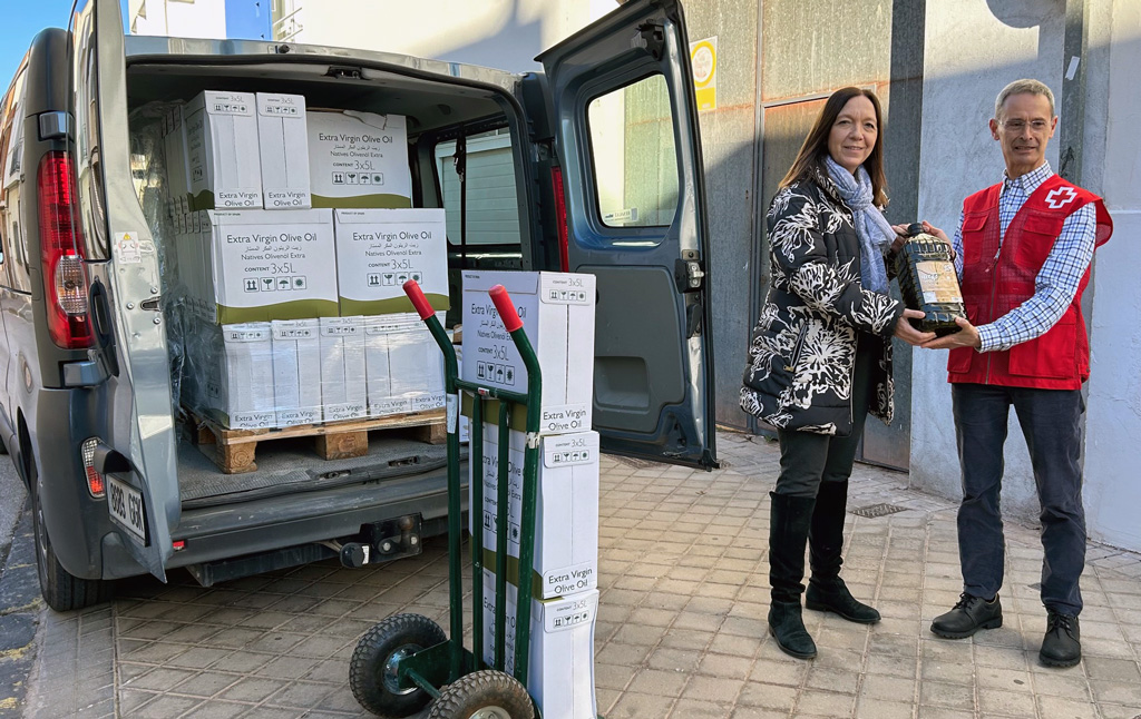Una donación por parte del Ayuntamiento de Alcázar de San Juan, en este caso por parte de la alcaldesa Rosa Melchor y del concejal Benjamín Gallego, que ha quedado materializada con la primera entrega, de un total de 20 garrafas de aceite de 5 litros cada una, a Cruz Roja.