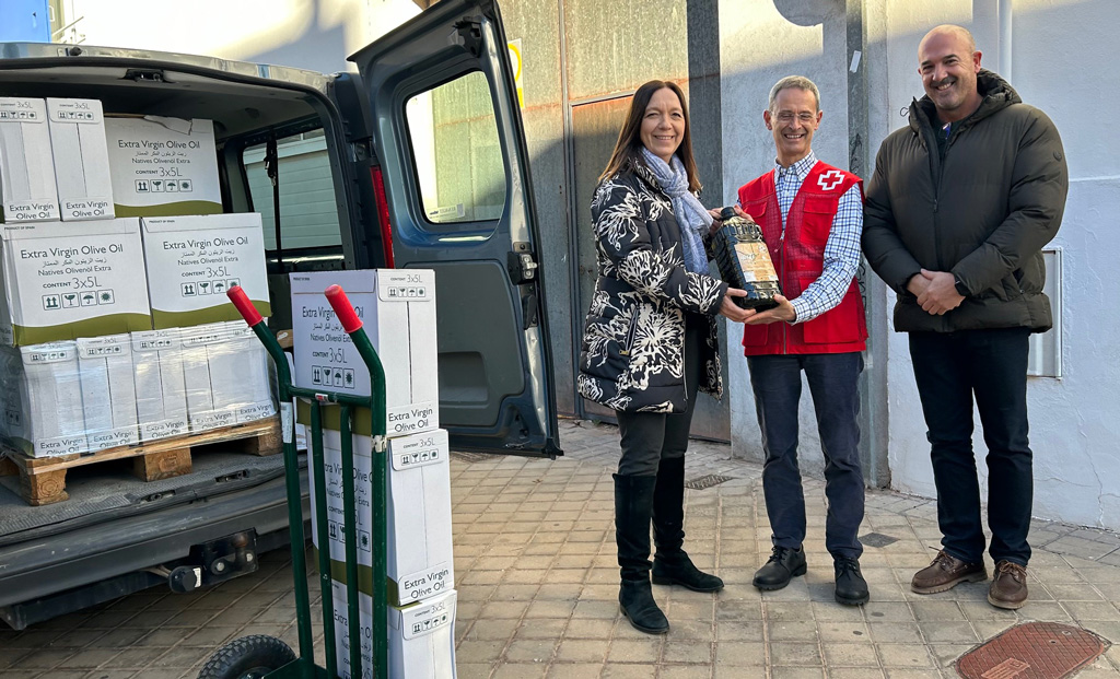 Una donación por parte del Ayuntamiento de Alcázar de San Juan, en este caso por parte de la alcaldesa Rosa Melchor y del concejal Benjamín Gallego, que ha quedado materializada con la primera entrega, de un total de 20 garrafas de aceite de 5 litros cada una, a Cruz Roja.