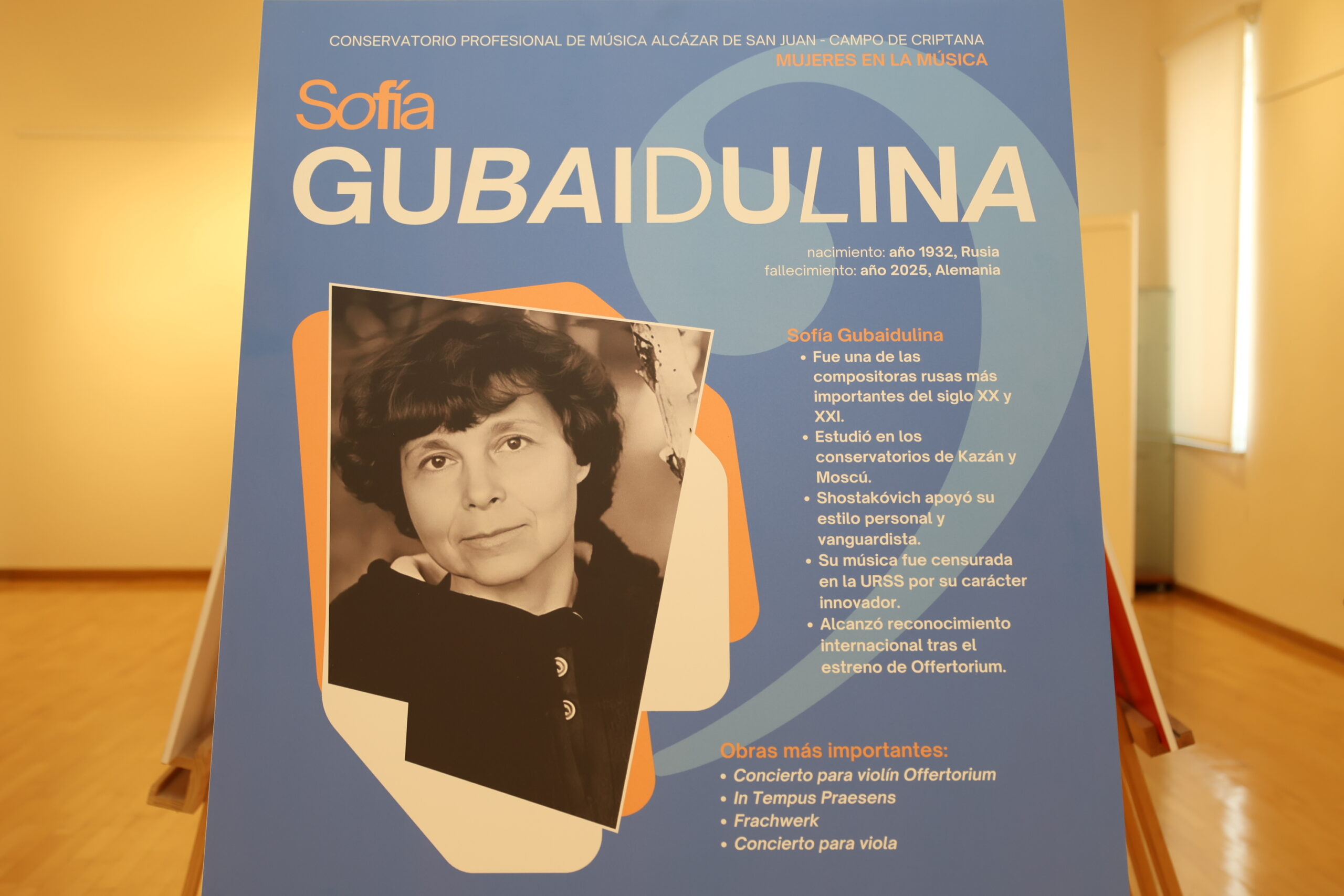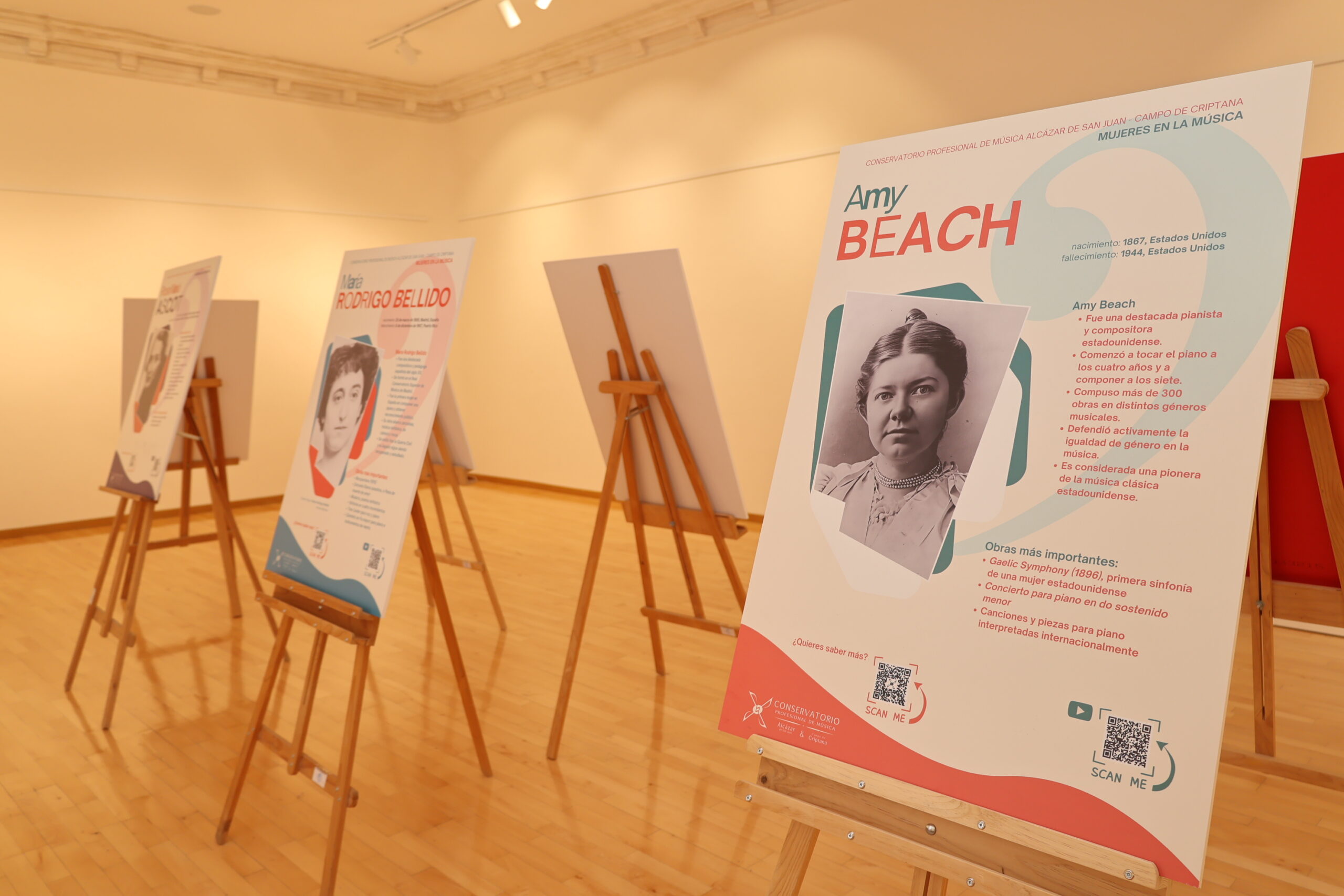 Besana Serrano ha explicado que esta exposición forma parte de un proyecto de innovación educativa nacido de una deficiencia detectada en las aulas: la dificultad de los alumnos para nombrar siquiera a una sola compositora: «Queríamos paliar esa falta de formación y dar nombres significativos para que sirvan de punto de partida y motivación para una exploración mayor», ha señalado Serrano. Así, nombres como el de María Rodrigo Bellido, Amy Beach, Rosa María Escot o Sofía Gubaidulina protagonizan atractivos paneles con información y códigos QR para saber más sobre ellas y conocer sus composiciones.
