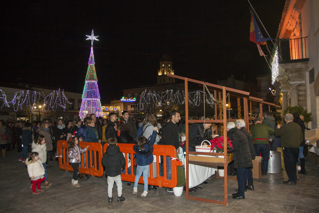El alcalde de Villacañas, Juan Ángel Almonacid, la concejala de Festejos, Laura Zaragoza, el párroco de la Iglesia Parroquial Nuestra Señora de la Asunción, D. Luis Lucendo, y Alicia Villarreal, como representante del Orfeón Juan del Enzina fueron los encargados de dar la bienvenida a los cientos de villacañeros y villacañeras que quisieron participar en esta celebración del encendido de las luces de Navidad y continuó con el lanzamiento de fuegos artificiales.