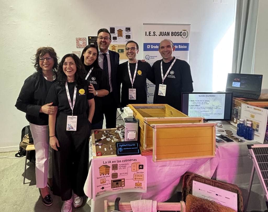 Durante la presentación, cuatro docentes del IES Juan Bosco han mostrado los avances de APIS IBERICA, una iniciativa interdisciplinar que combina ciencia, sostenibilidad y tecnología con el objetivo de acercar al alumnado al conocimiento de la abeja ibérica y su papel fundamental en los ecosistemas.