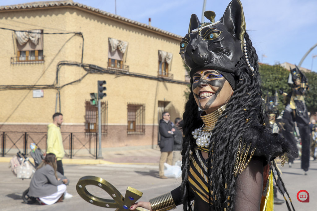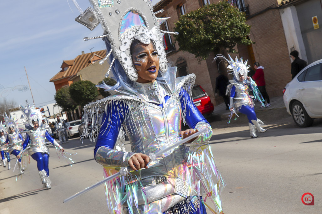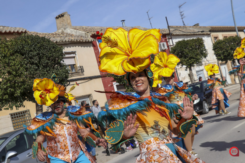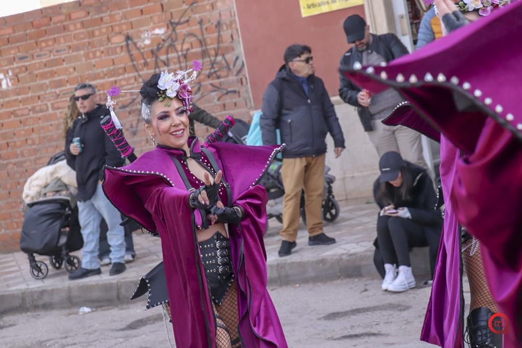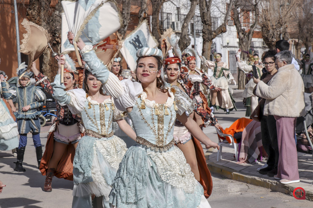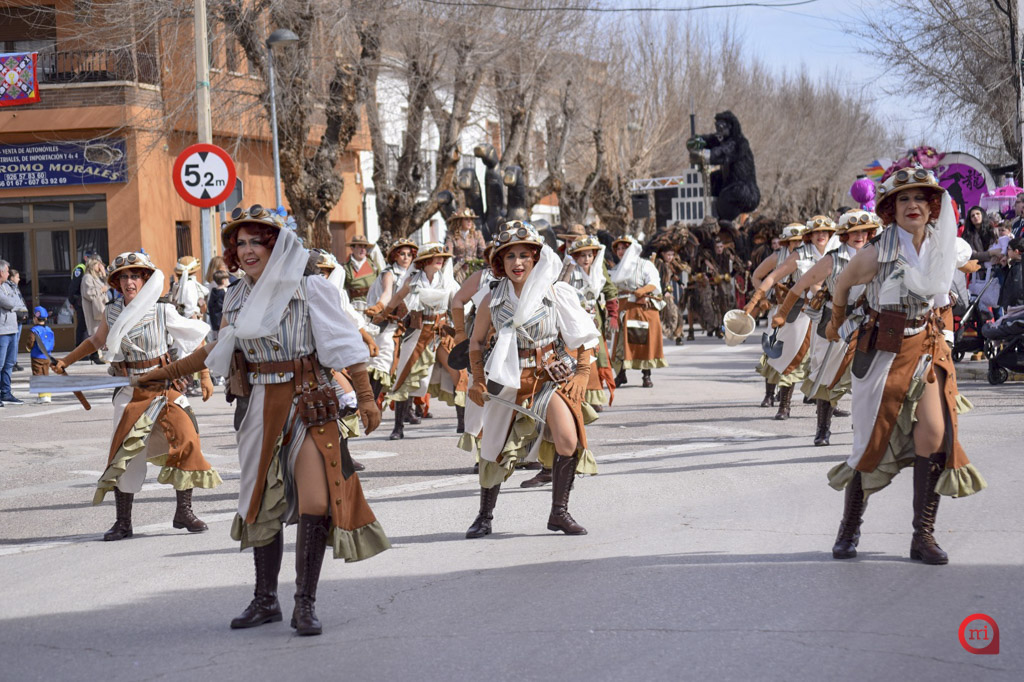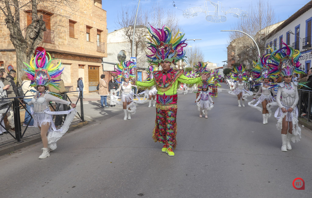 El cortejo lo abrió la comparsa local Euphoria Dance con la temática “King Kong”. Tras ellos, comenzaron a desfilar las agrupaciones regionales invitadas. La Escuela de Danza Attitude, llegada desde Campo de Criptana, presentó “El Latido de los Andes”, mientras que la Asociación El Trajín, procedente de La Guardia, ofreció “Bushido Maestría en Combate”.