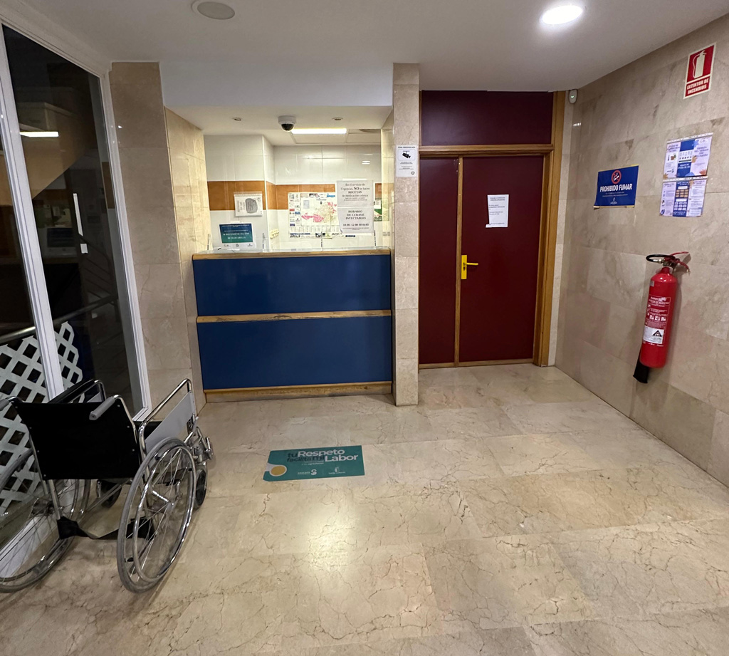 El personal sanitario, tremendamente asustado, pulsó el botón del pánico, pero éste no funcionaba, teniendo que llamar a la Guardia Civil y refugiándose en el pasillo donde se encuentran las consultas, zona cuyo acceso está cerrado por una puerta de madera con cerrojo, pero la agresora logró abrirla con una fuerte patada, momento en el que las cuatro trabajadoras temieron no poder contenerla —“pensábamos que nos iba a pegar a todas”—.